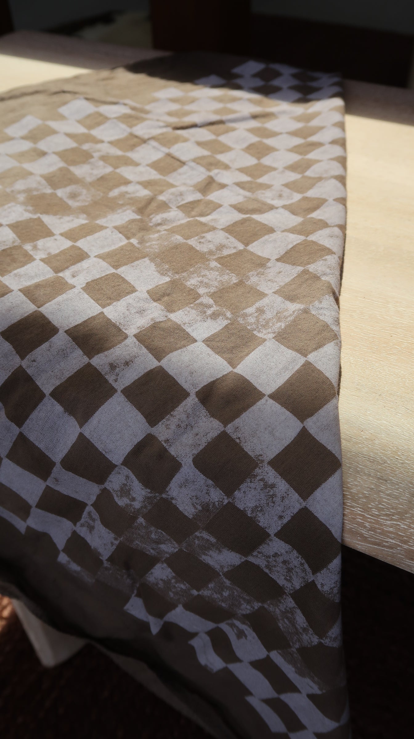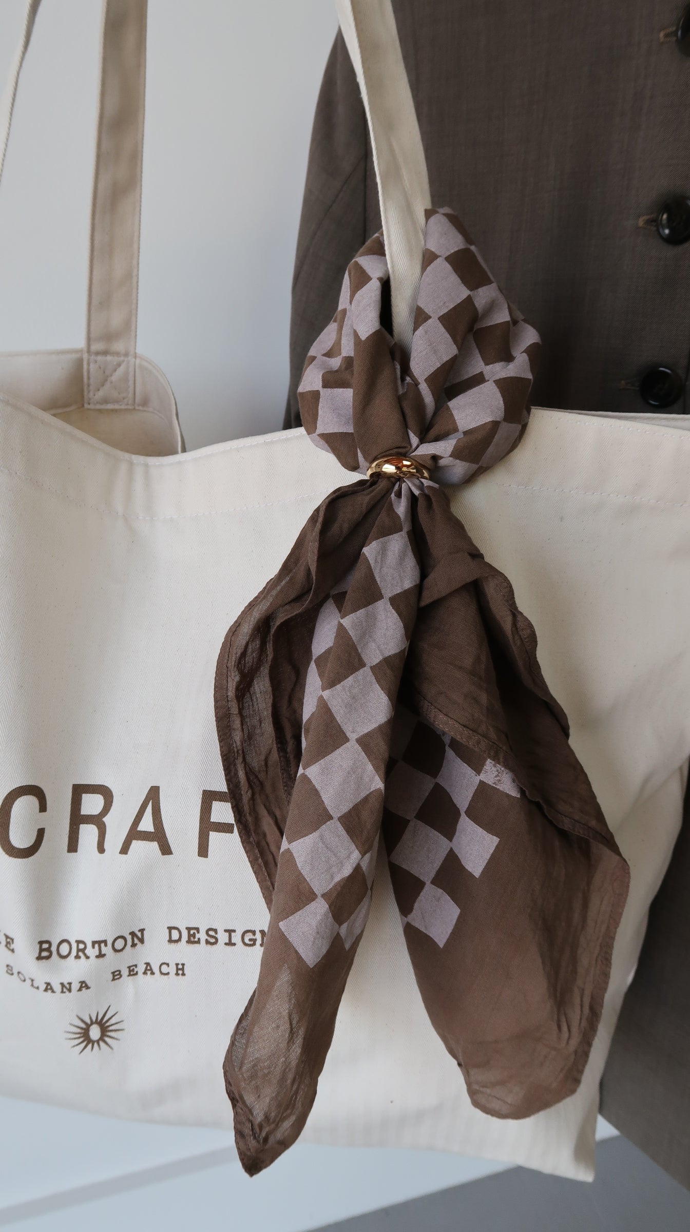 With its distressed checkerboard pattern in warm, grounded tones, the Jo Bandana strikes the perfect balance between bold and understated. Each piece has an organic, lived-in feel that only gets better with wear. Style it around your neck, tie it to your favorite bag, or use it as a headscarf — its versatility makes it a quiet essential for everyday dressing.