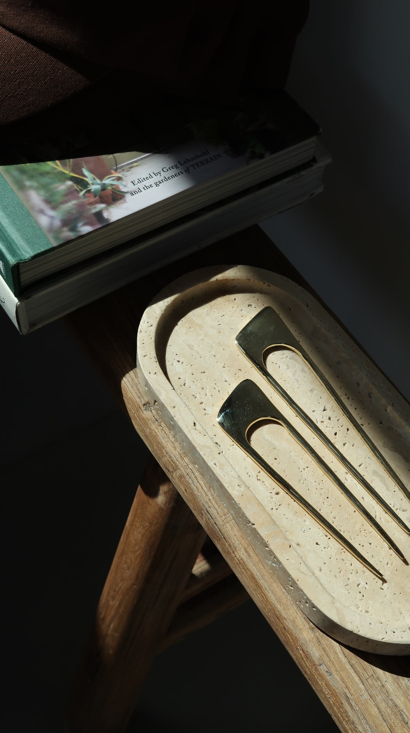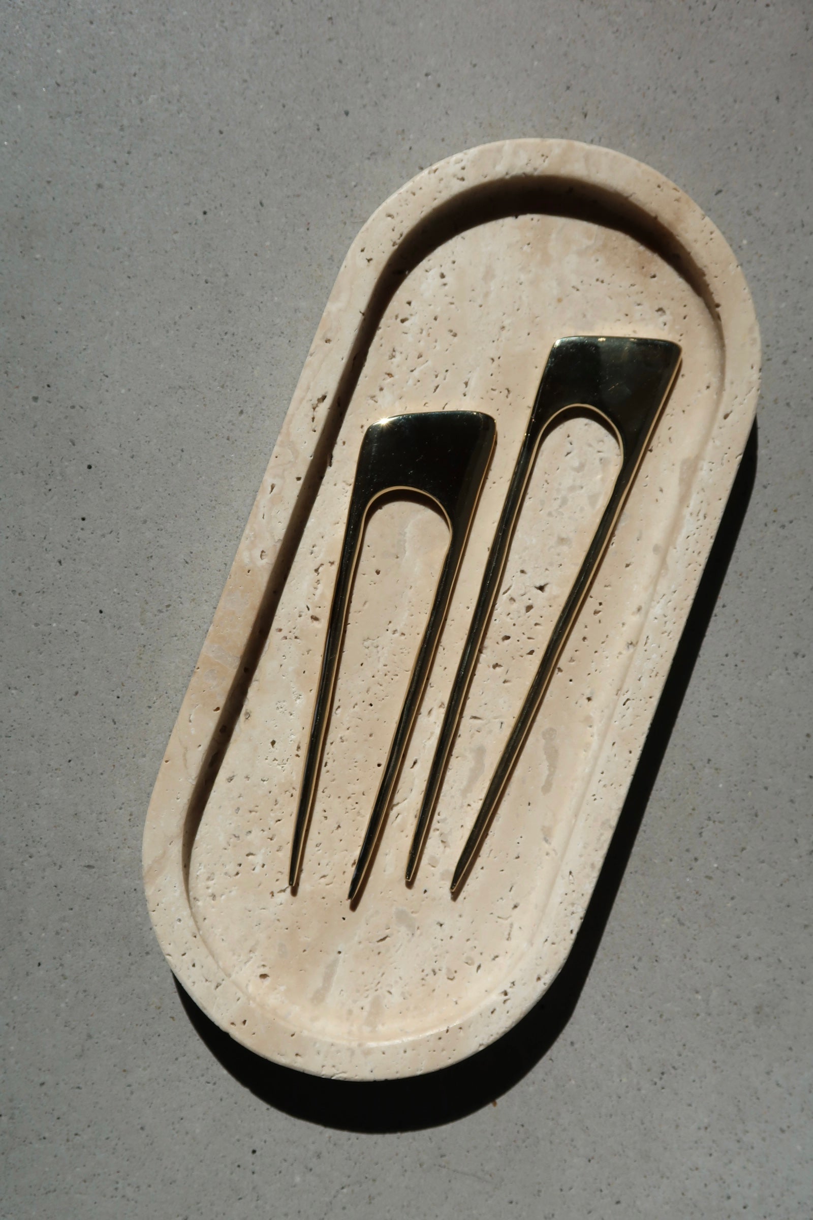 The Asymmetrical French Pin is a sculptural take on a classic styling essential. Use it to secure a bun or elevate your French twist — it’s a refined alternative to everyday clips, offering structure without sacrificing style.