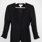A refined vintage blazer with a sculptural scalloped neckline, covered buttons, and a clean, elongated silhouette. Minimal, modern, and quietly striking. Fully lined.