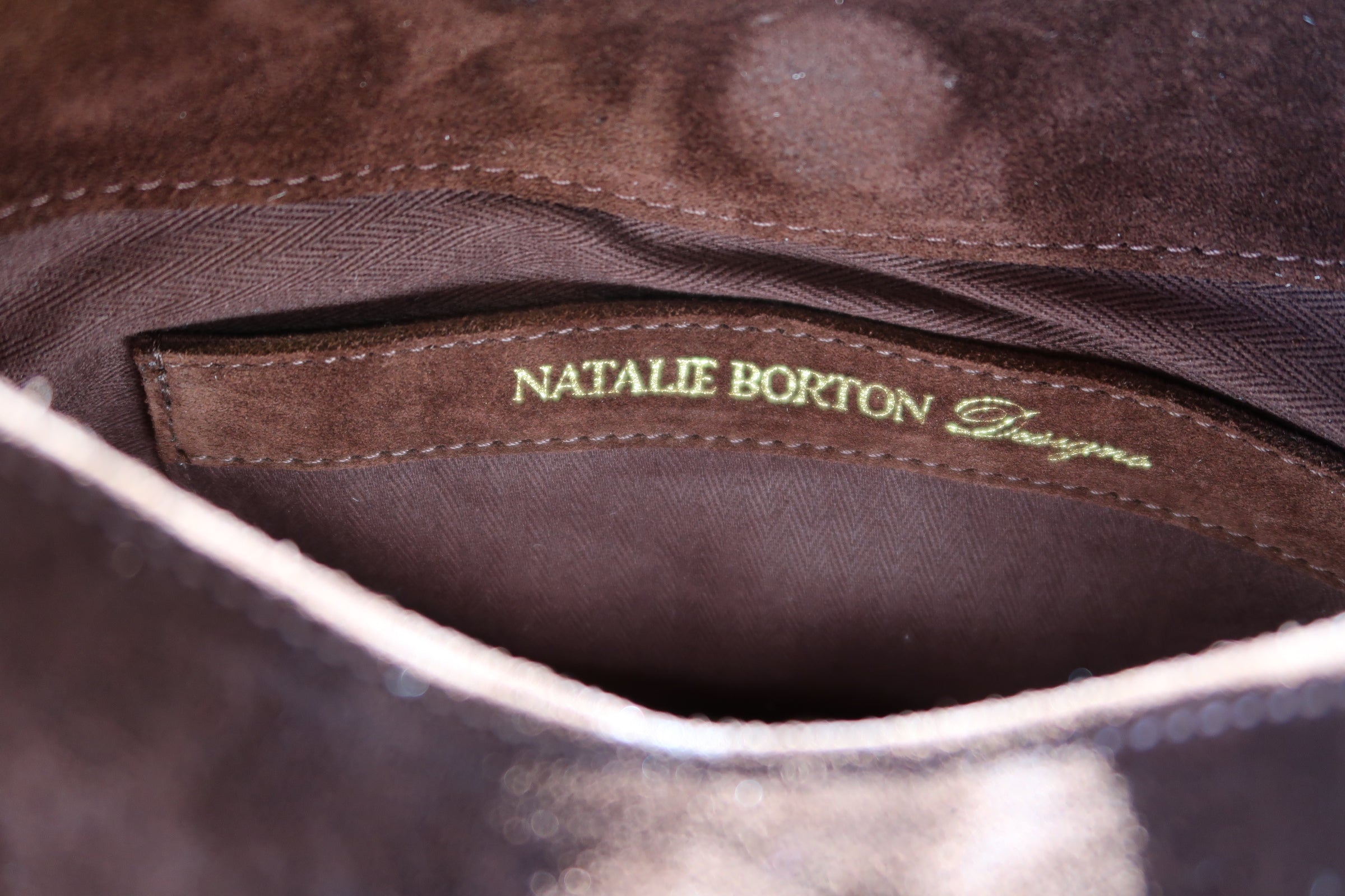 Soft chocolate brown suede offers a rich, versatile canvas, while the removable crossbody strap adds effortless versatility — wear it tucked inside for an architectural handheld look or attach it when the day calls for ease.