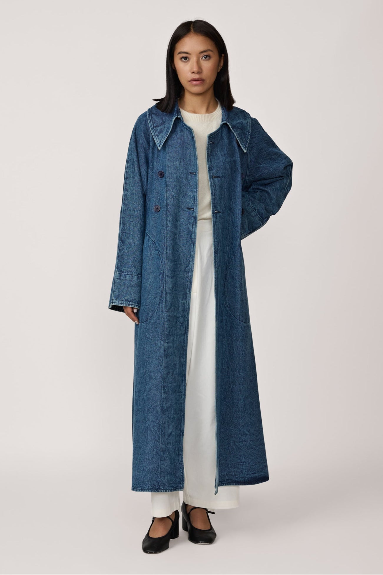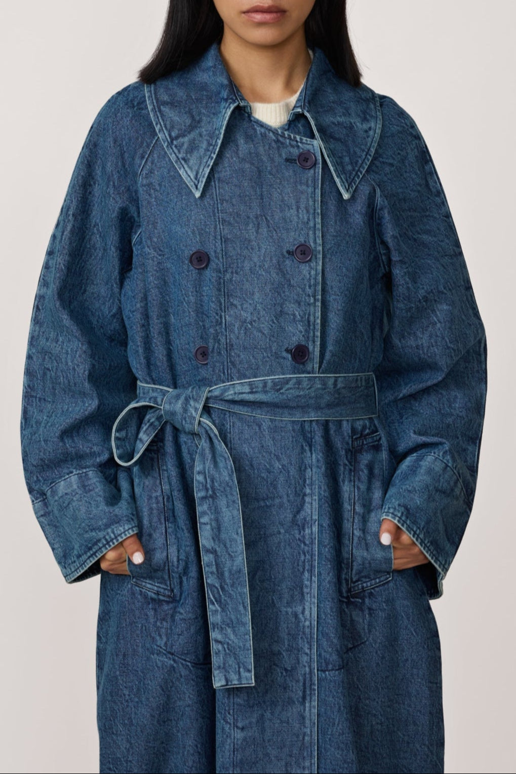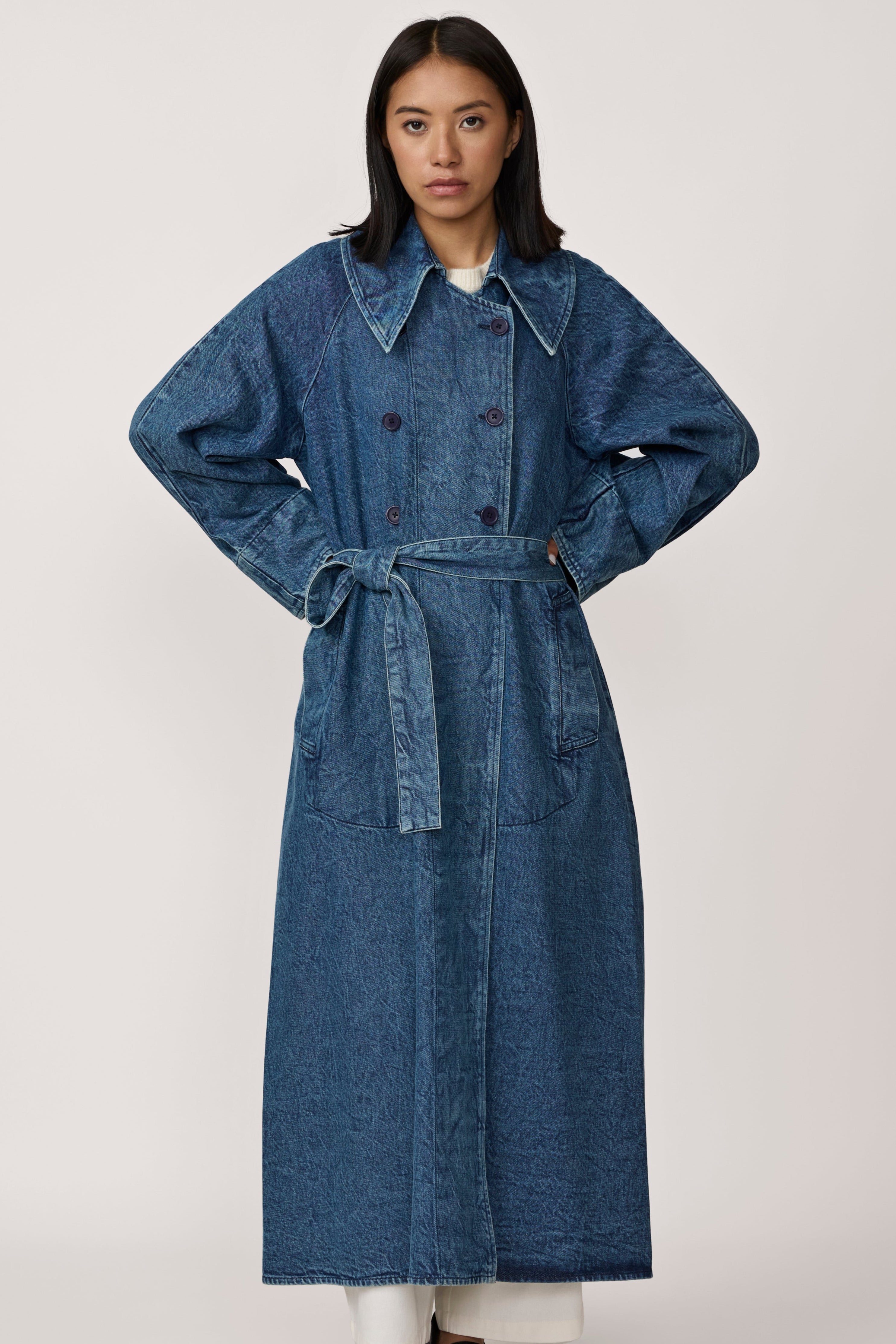 Marin Trench Coat - Washed Denim