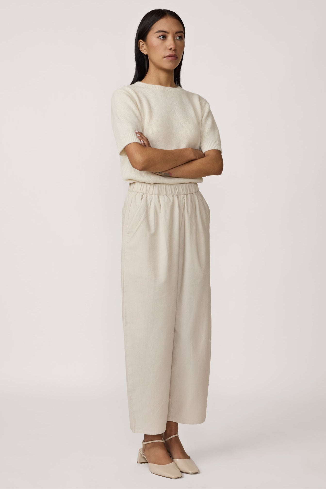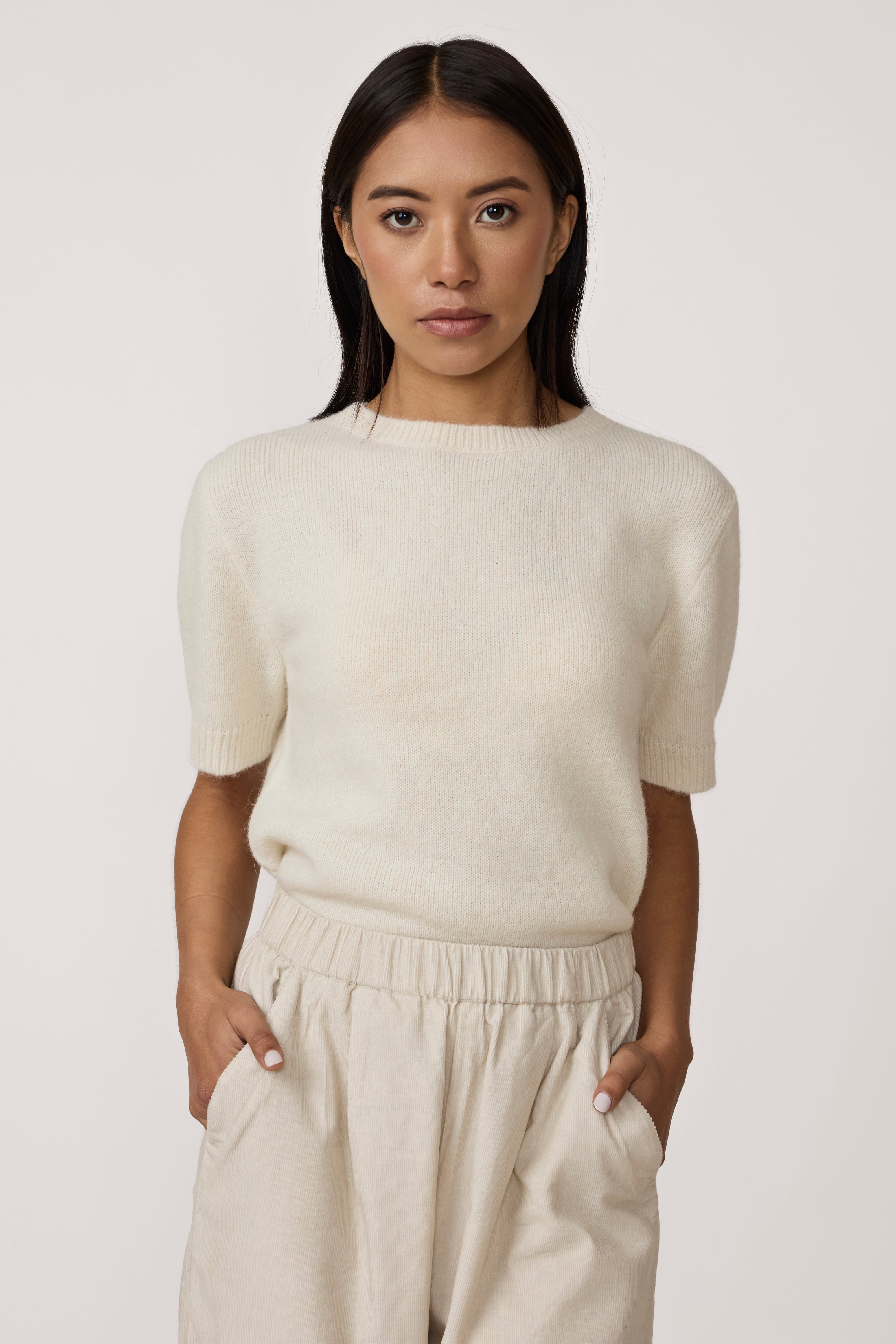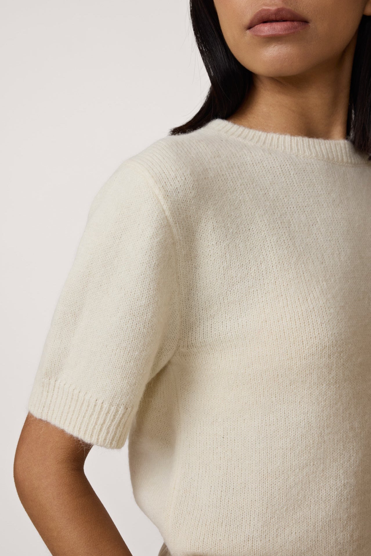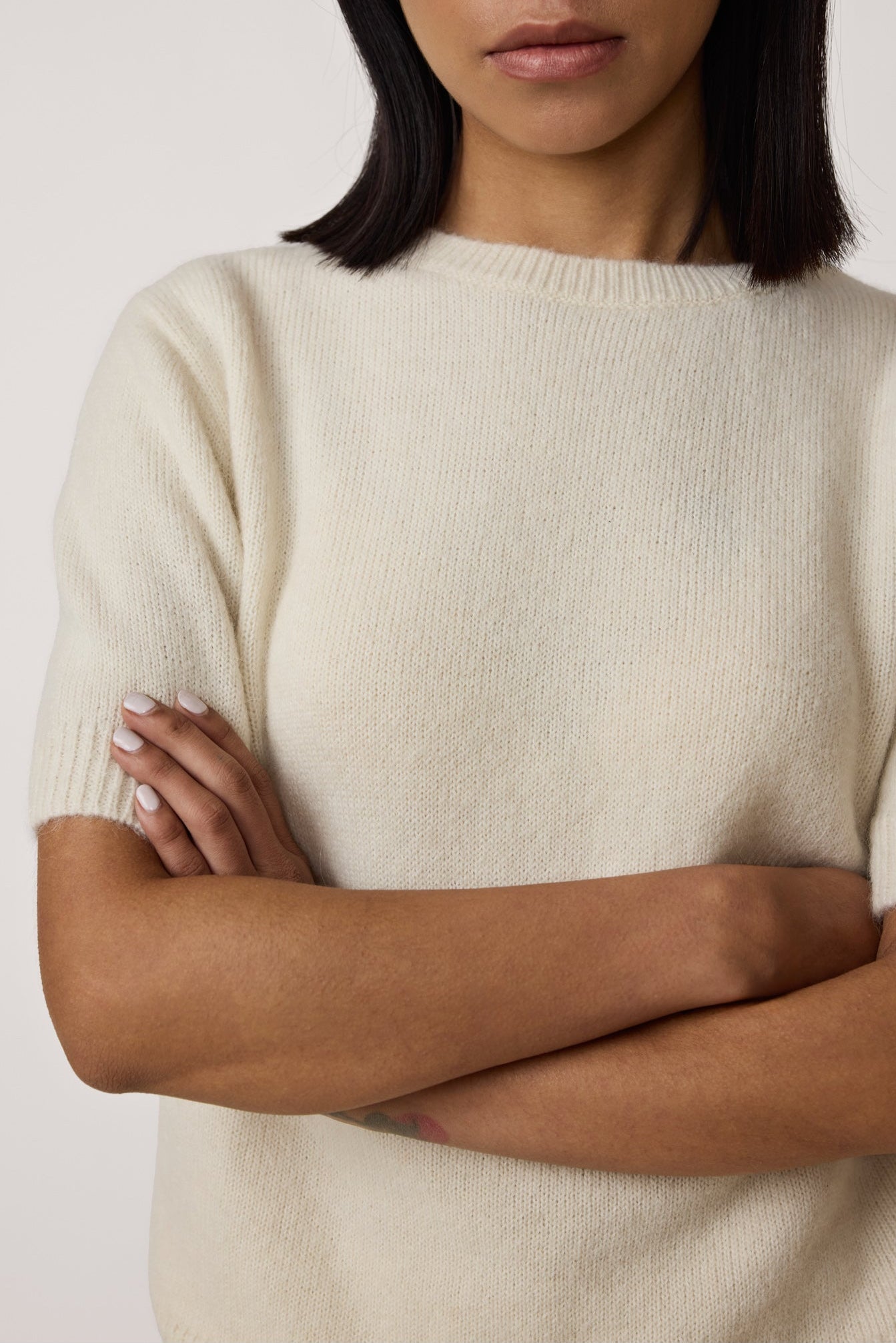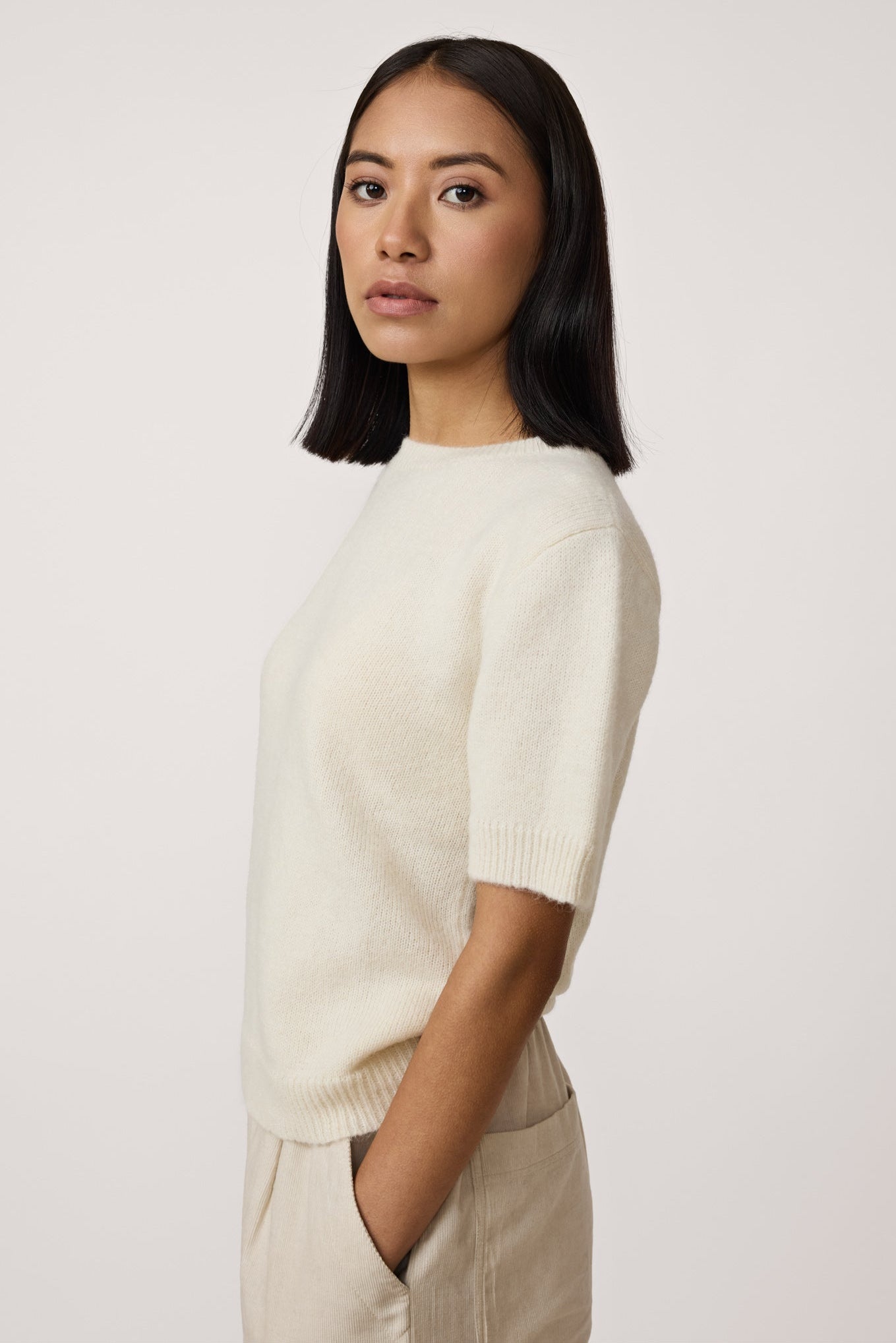 Elevate your essentials with this classic sweater tee, crafted from a luxurious blend of baby alpaca and wool. Soft to the touch and breathable, this piece combines the warmth of wool with the silky smoothness of alpaca for an effortless, comfortable fit. Its clean lines and versatile design make it perfect for layering or wearing on its own, offering a timeless style that pairs seamlessly with anything in your wardrobe.