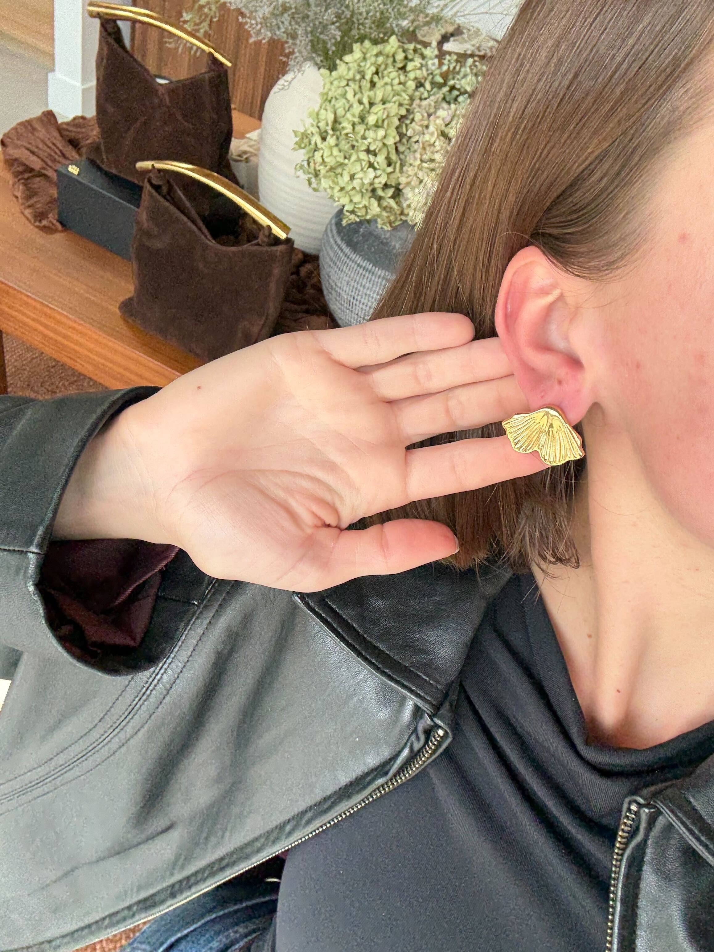 A sculptural ode to vintage glamour. The Vera Fan Earrings are delicate, feminine, bold, organic and refined. Their fan-like shape catches the light beautifully, adding subtle drama and timeless elegance to any look.