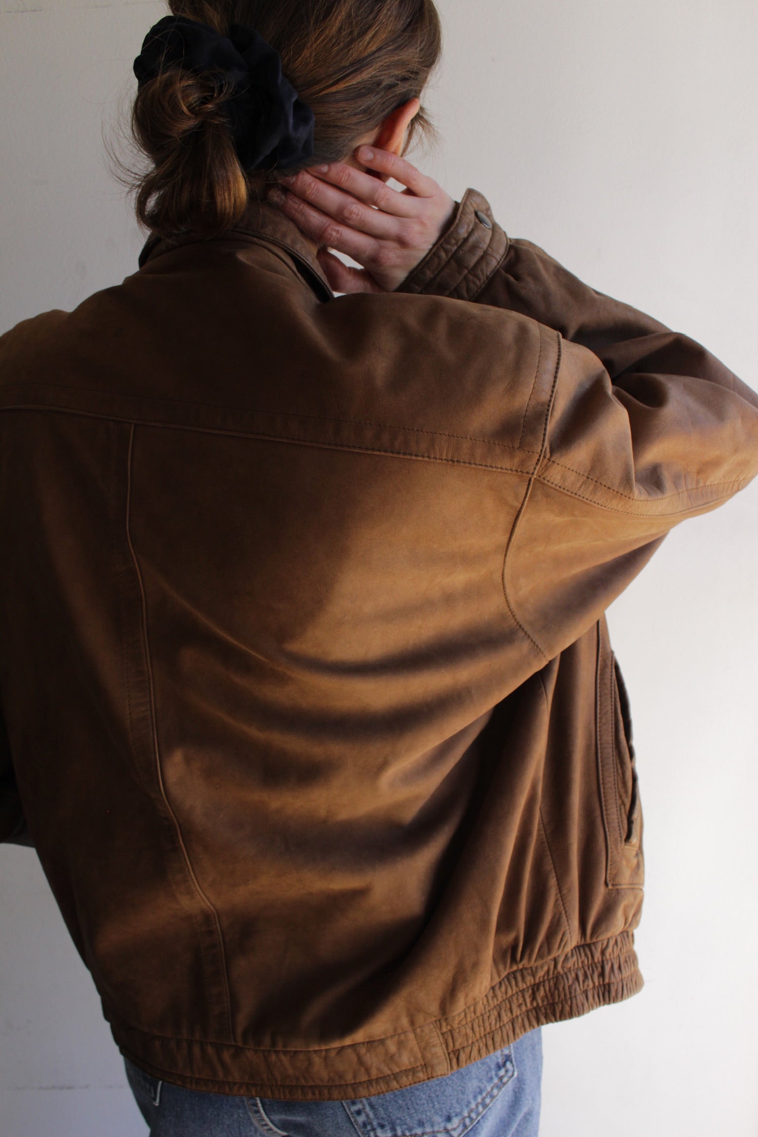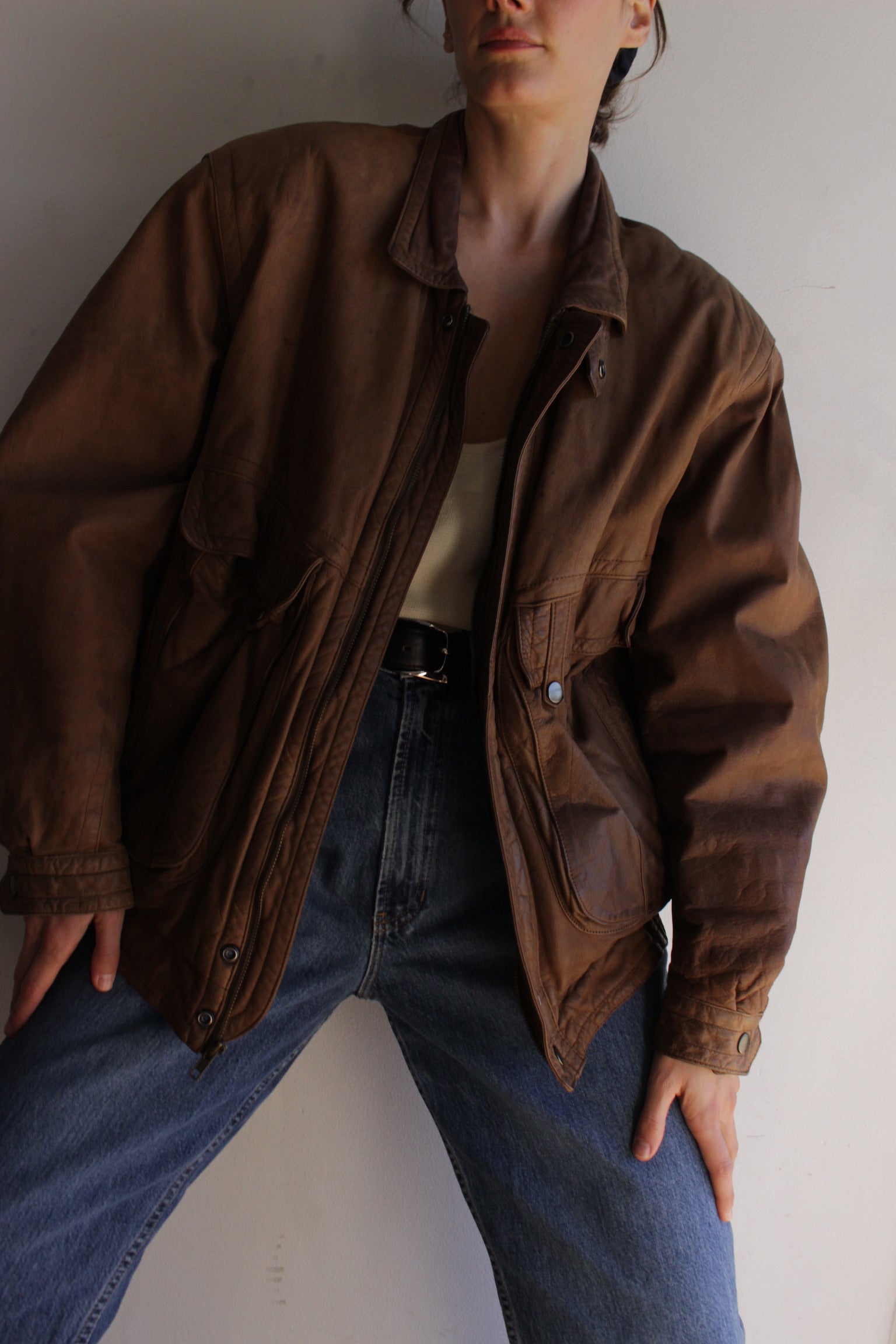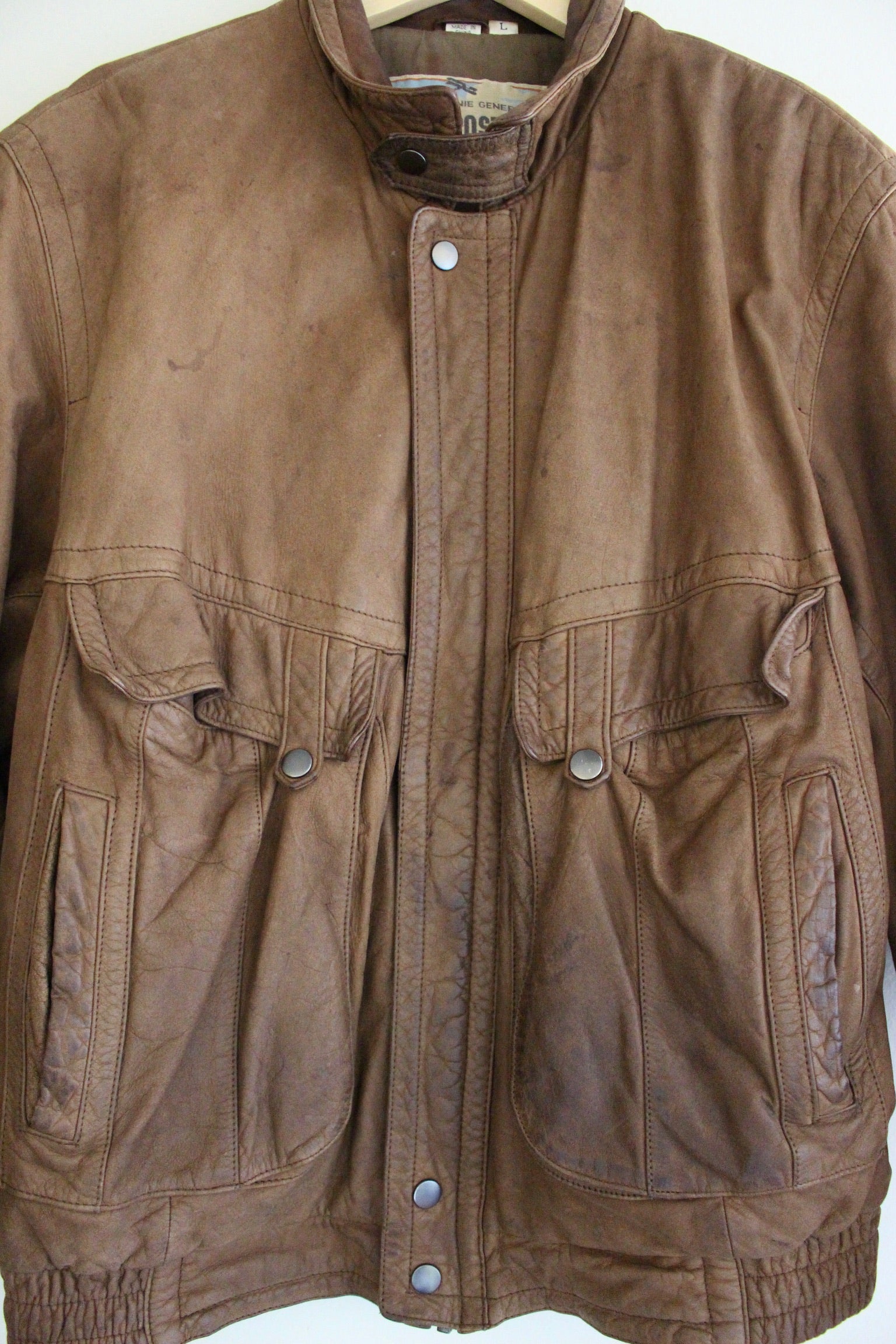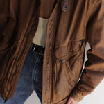 Lovely cocoa brown leather bomber jacket with a classic cut and fit. The jacket has a full lining. Perfect standing collar with a front zip closure, side pockets and front flap pockets with closures. The jacket is fully lined.