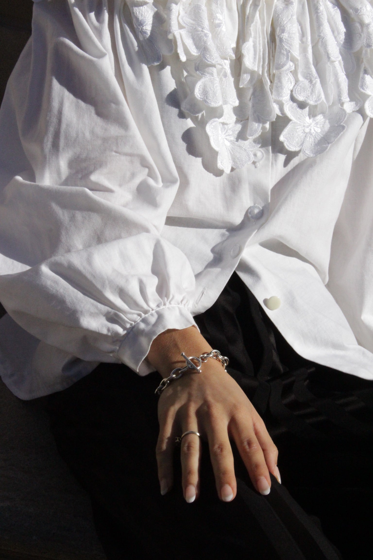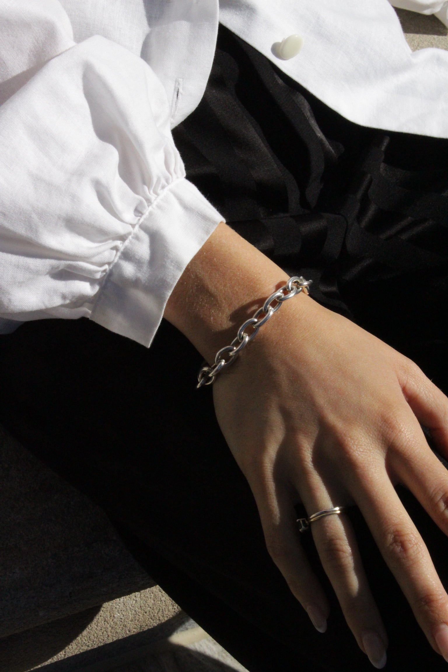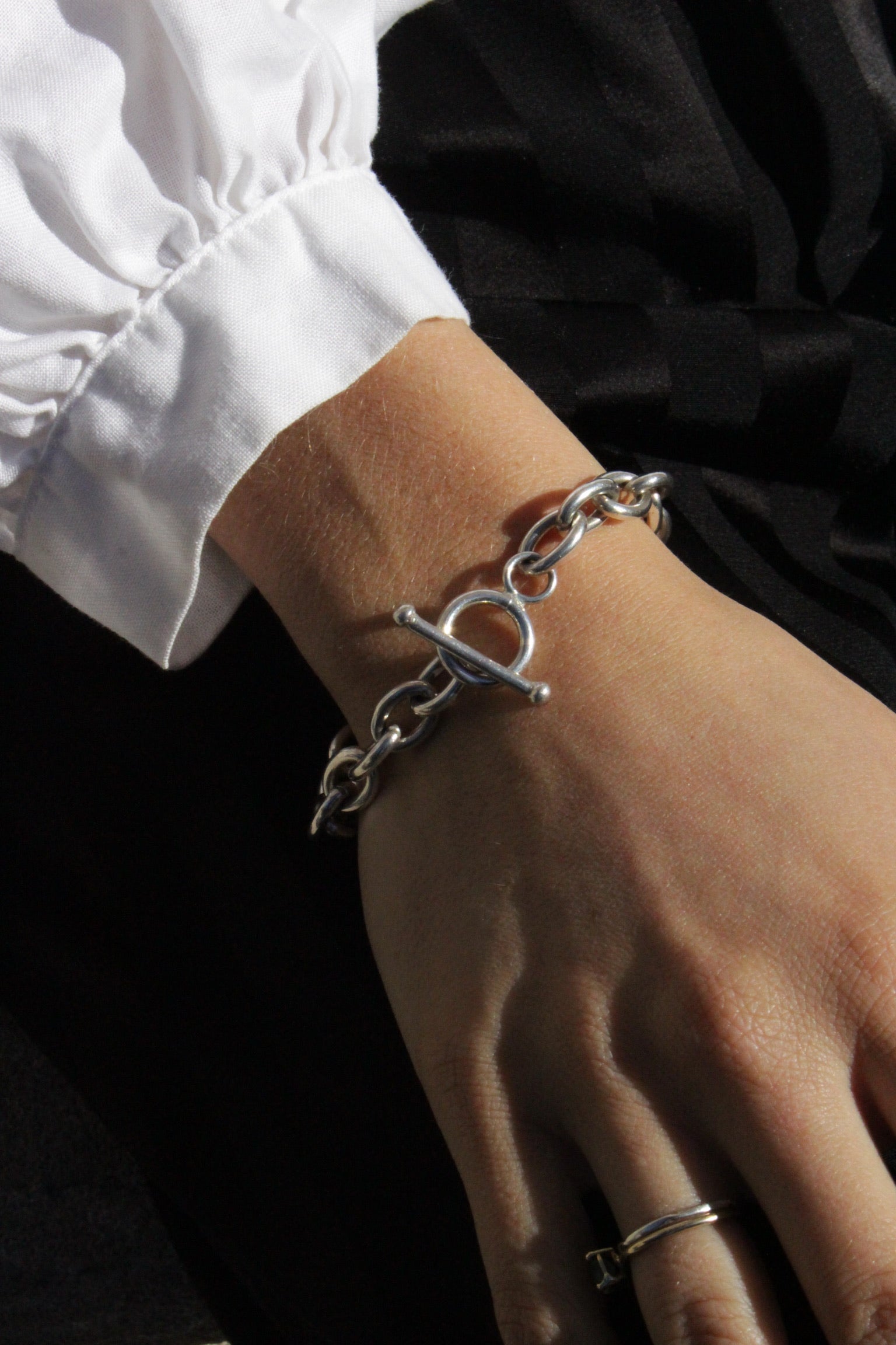 A favorite & elegant link bracelet in a bright & perfectly polished Sterling silver. Bracelet has a medium weight with lovely toggle closure.