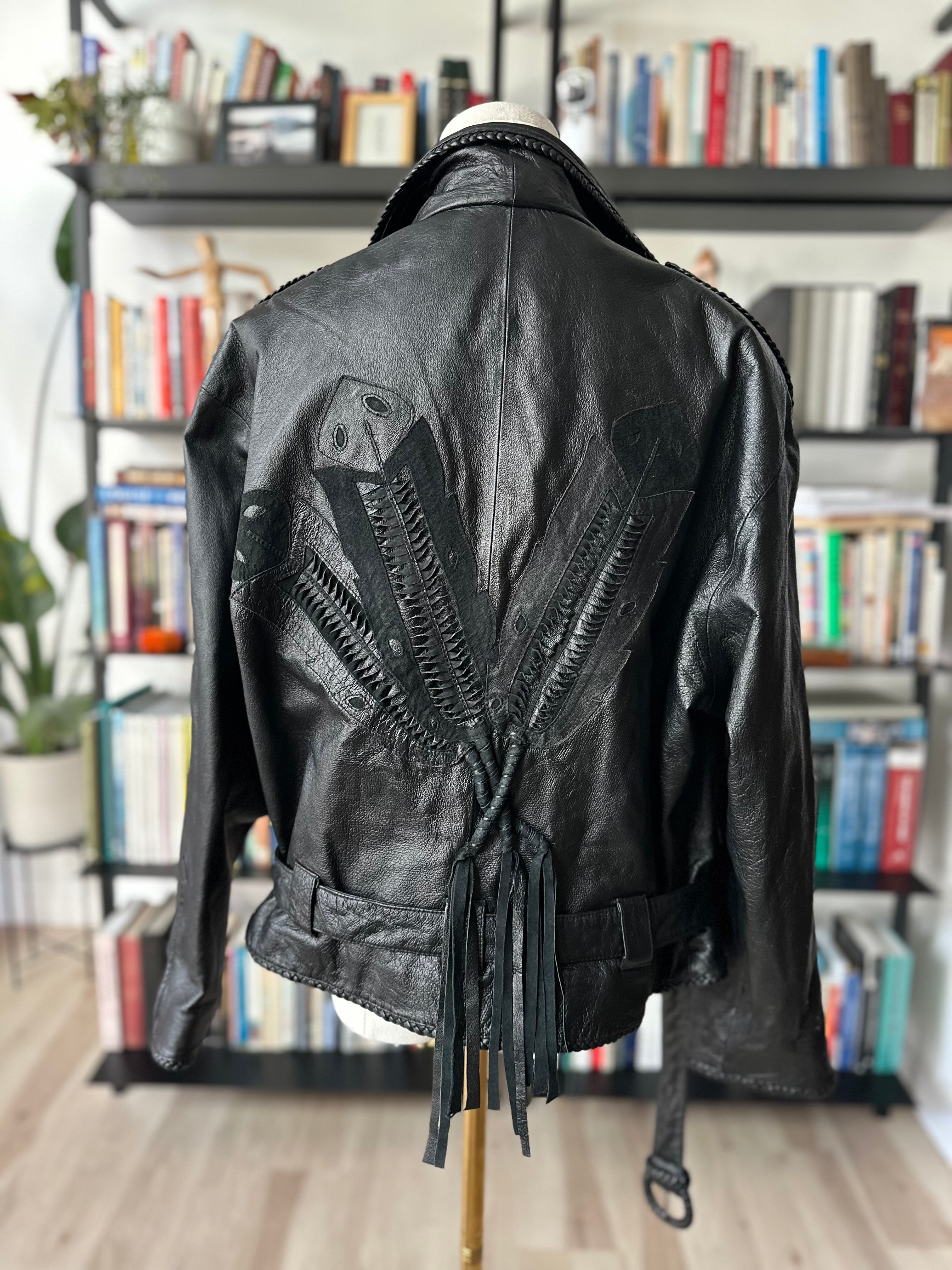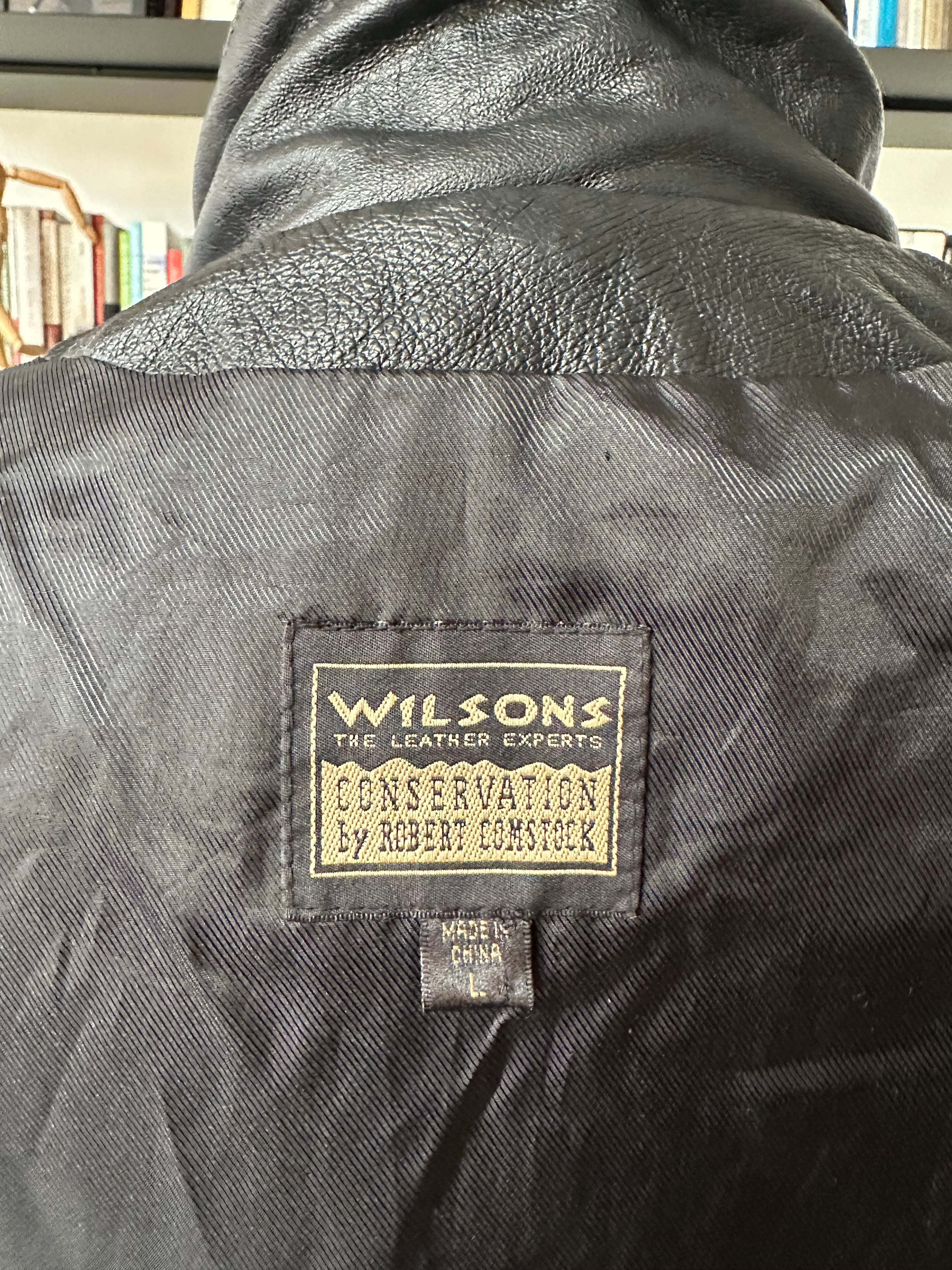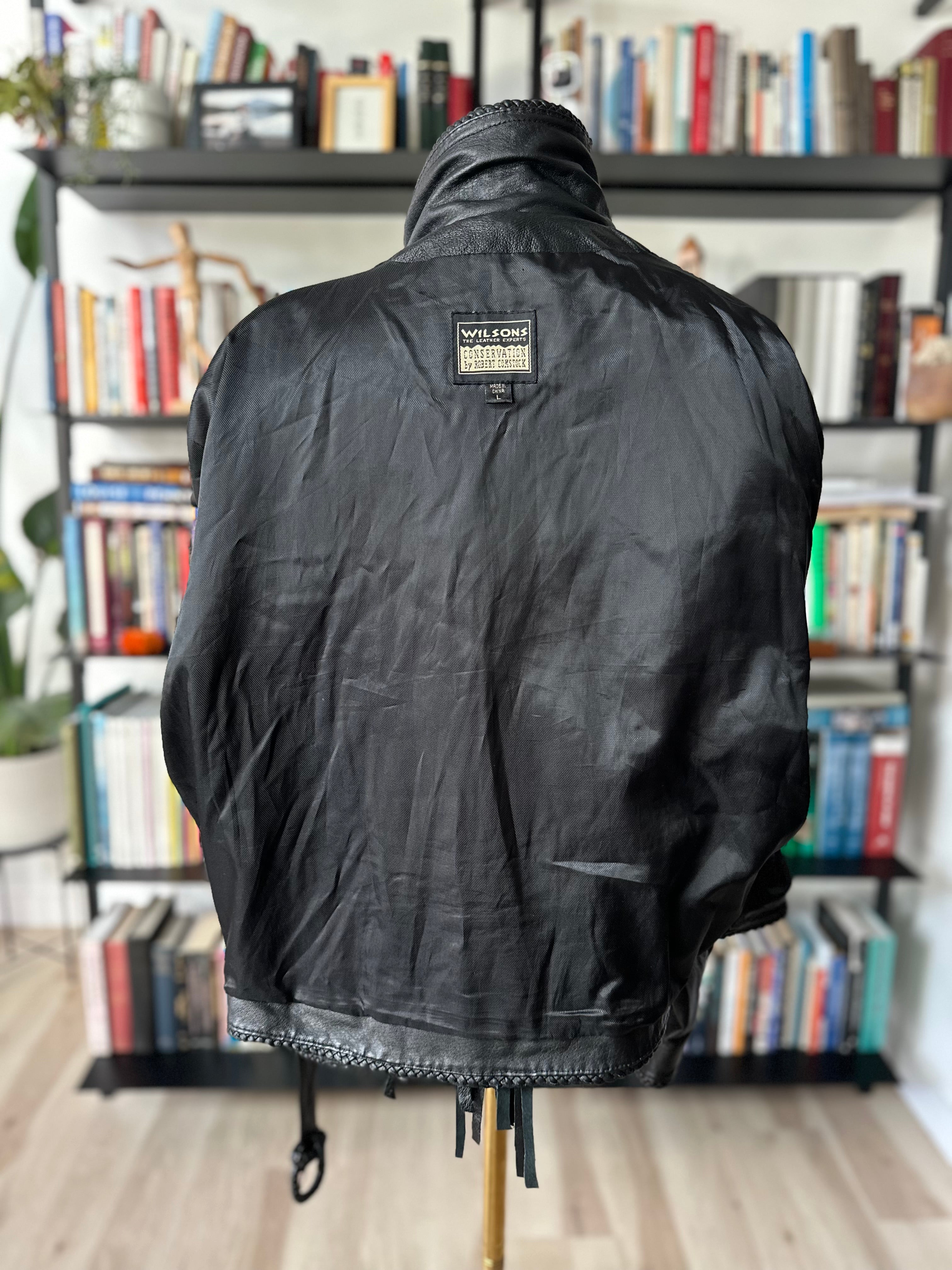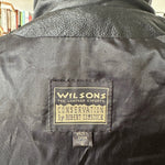 90s Wilson’s leather jacket with feather cutout detail on back. Fully lined. Excellent condition