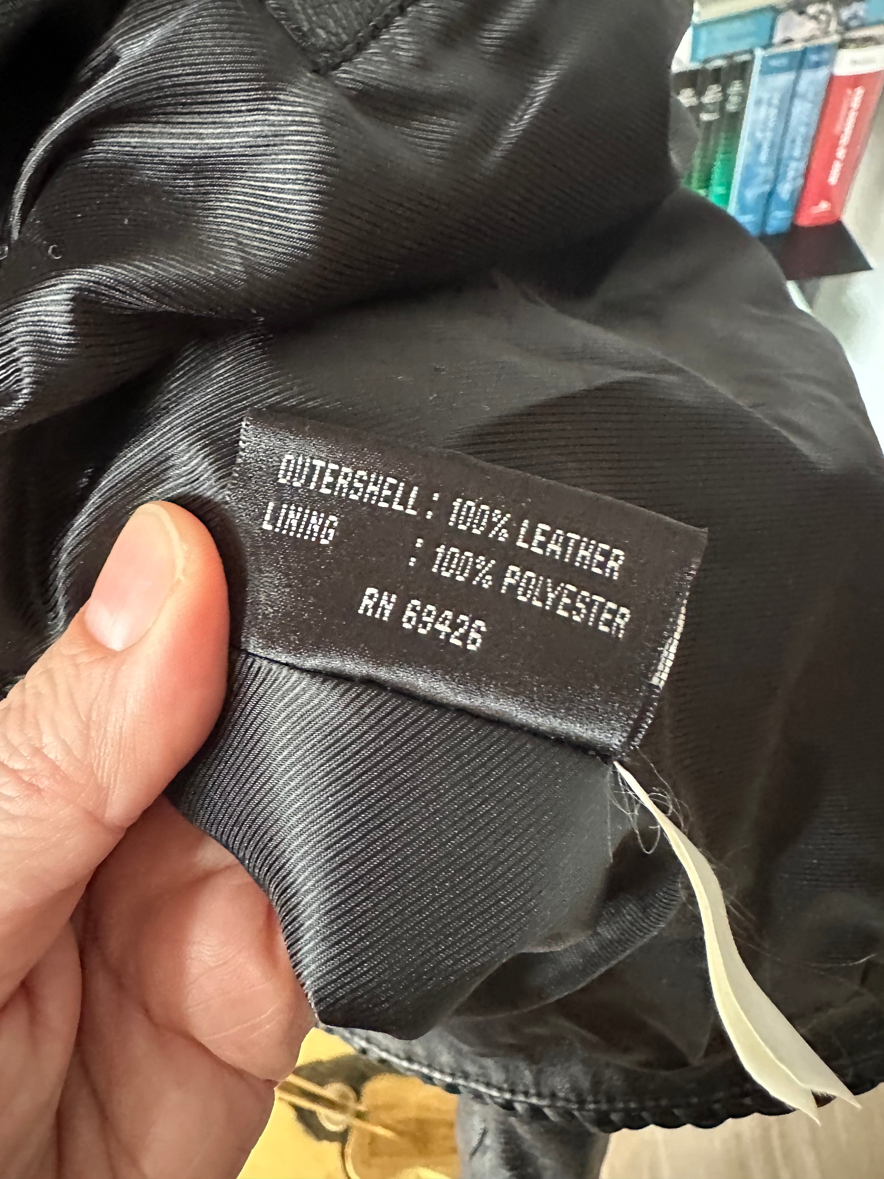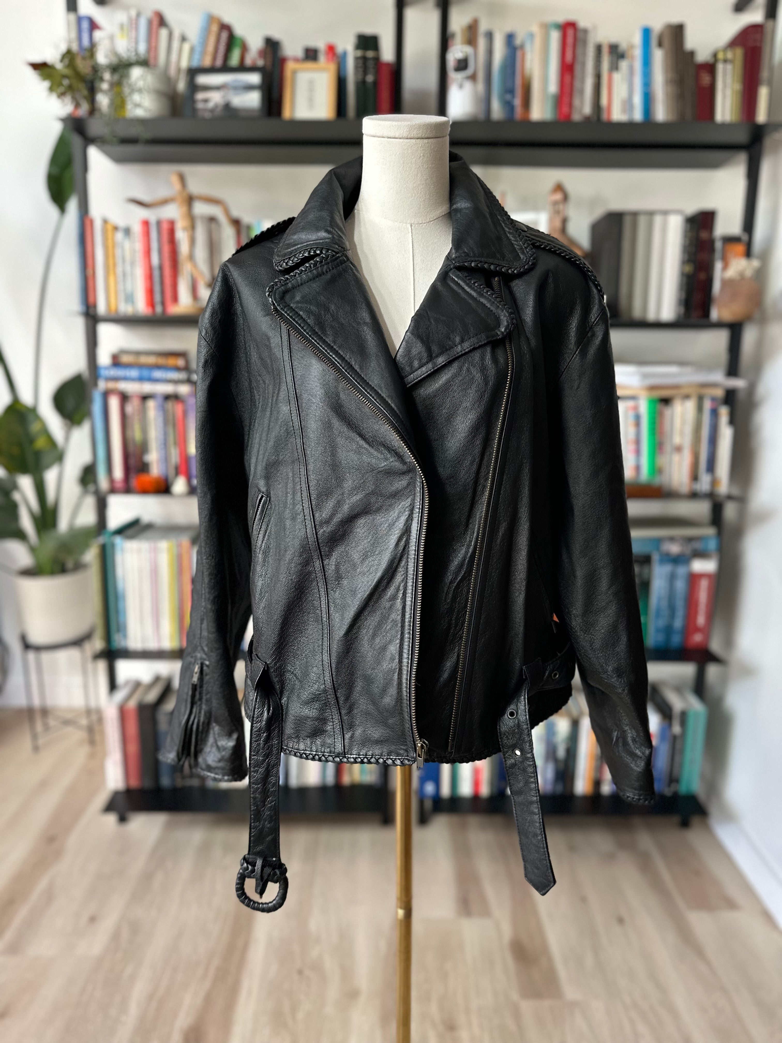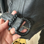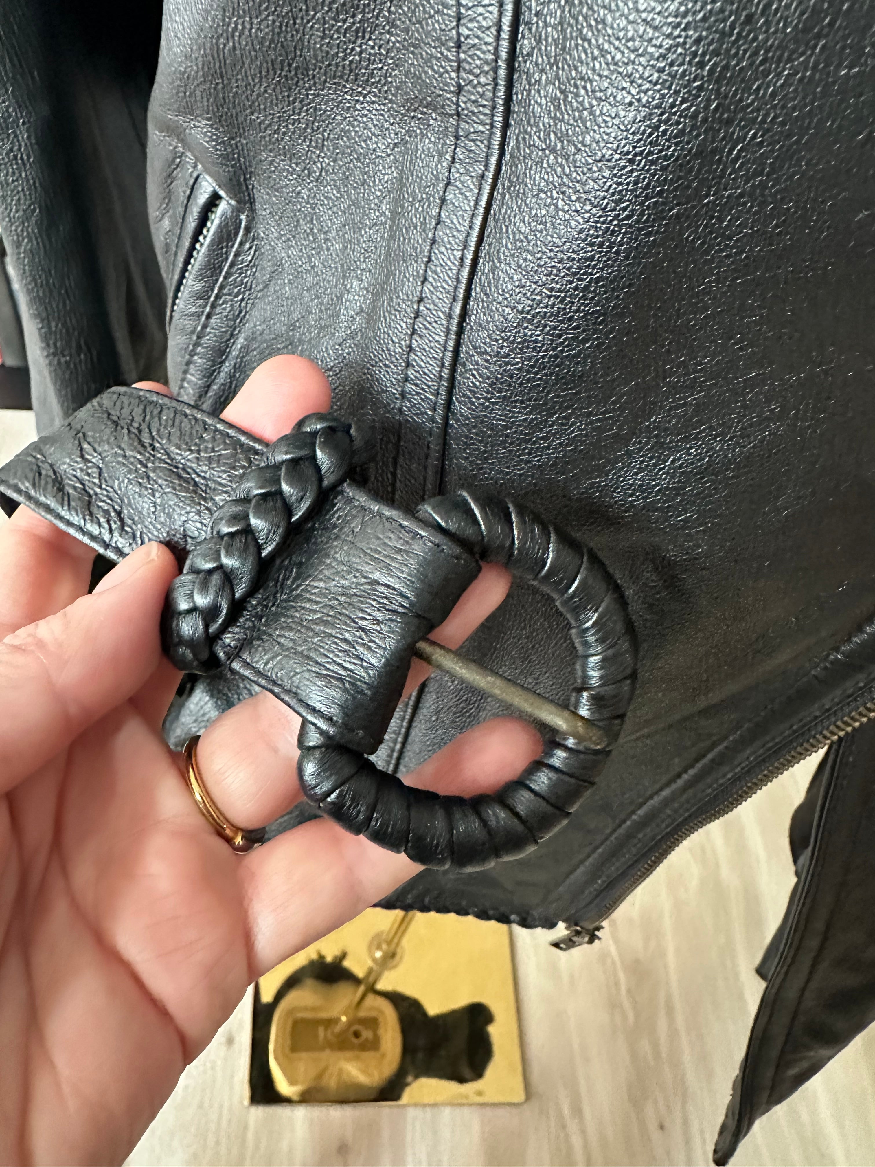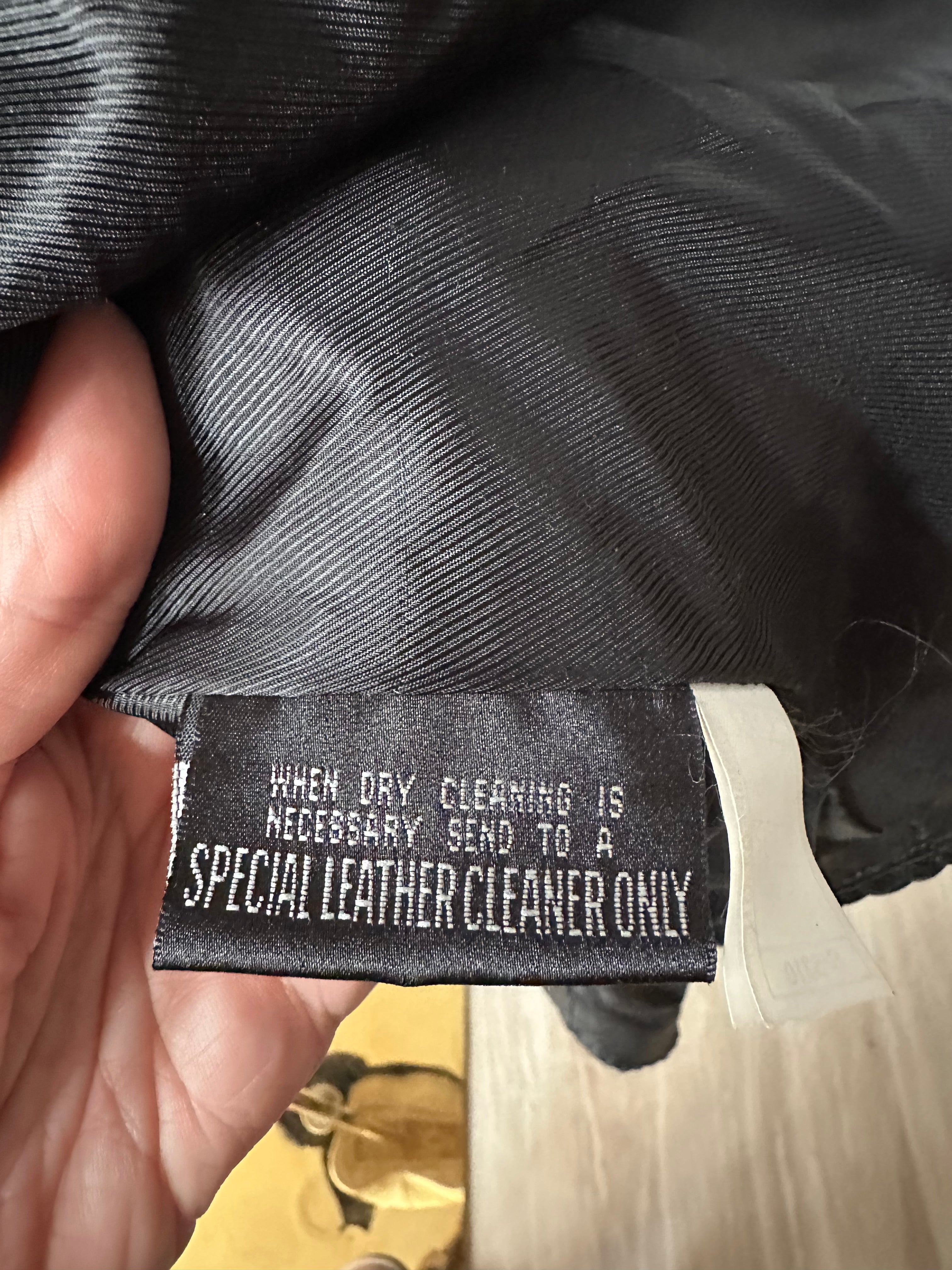 90s Wilson’s leather jacket with feather cutout detail on back. Fully lined. Excellent condition