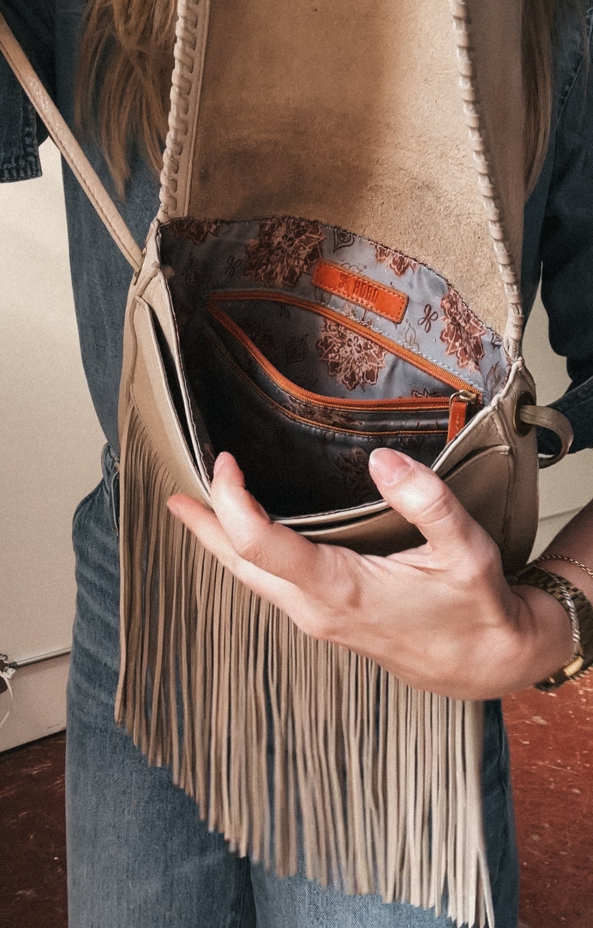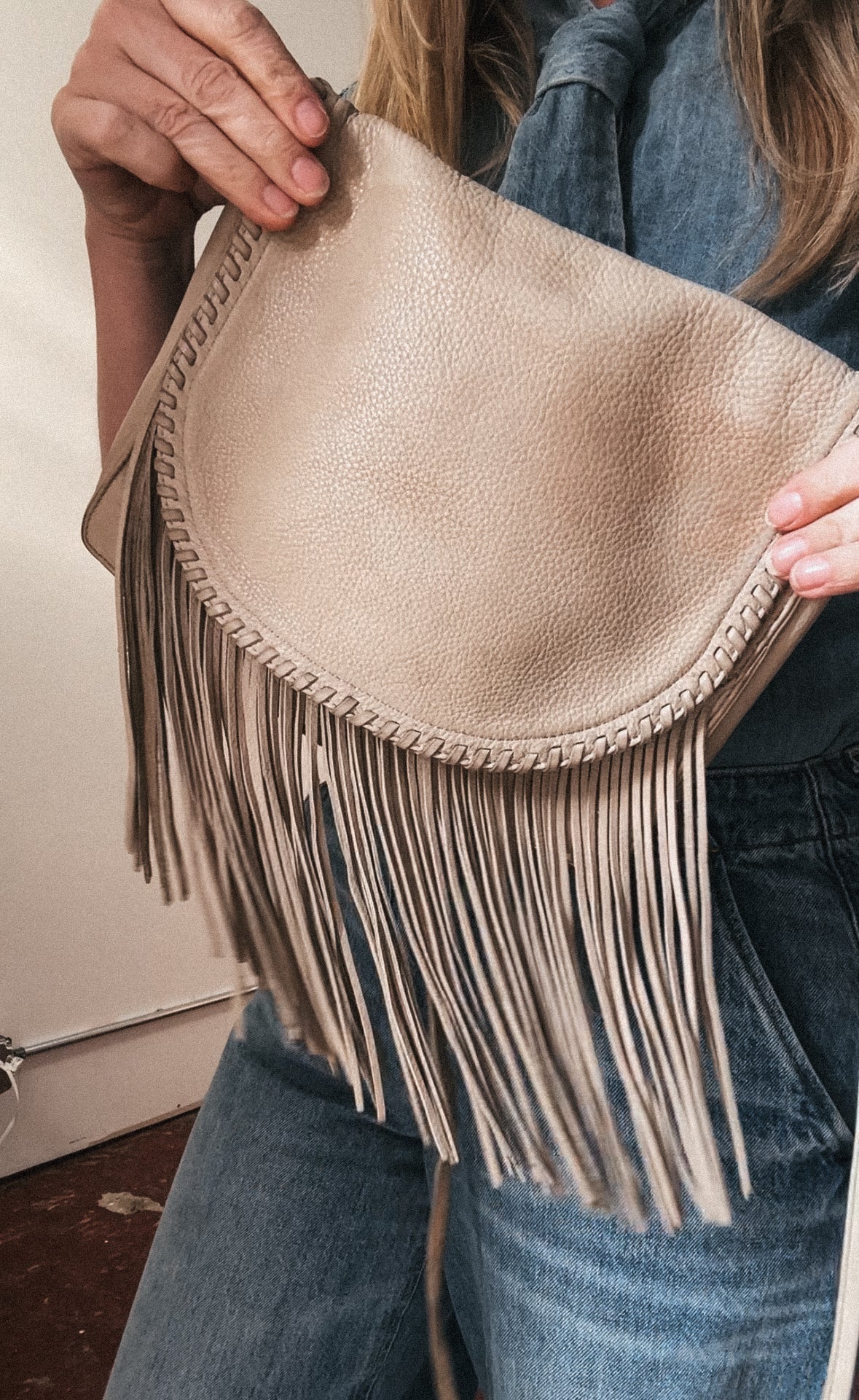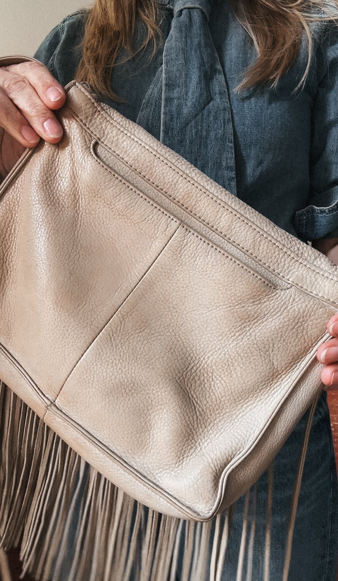 Hobo cream leather fringe bag. Some marks on leather but overall in great condition