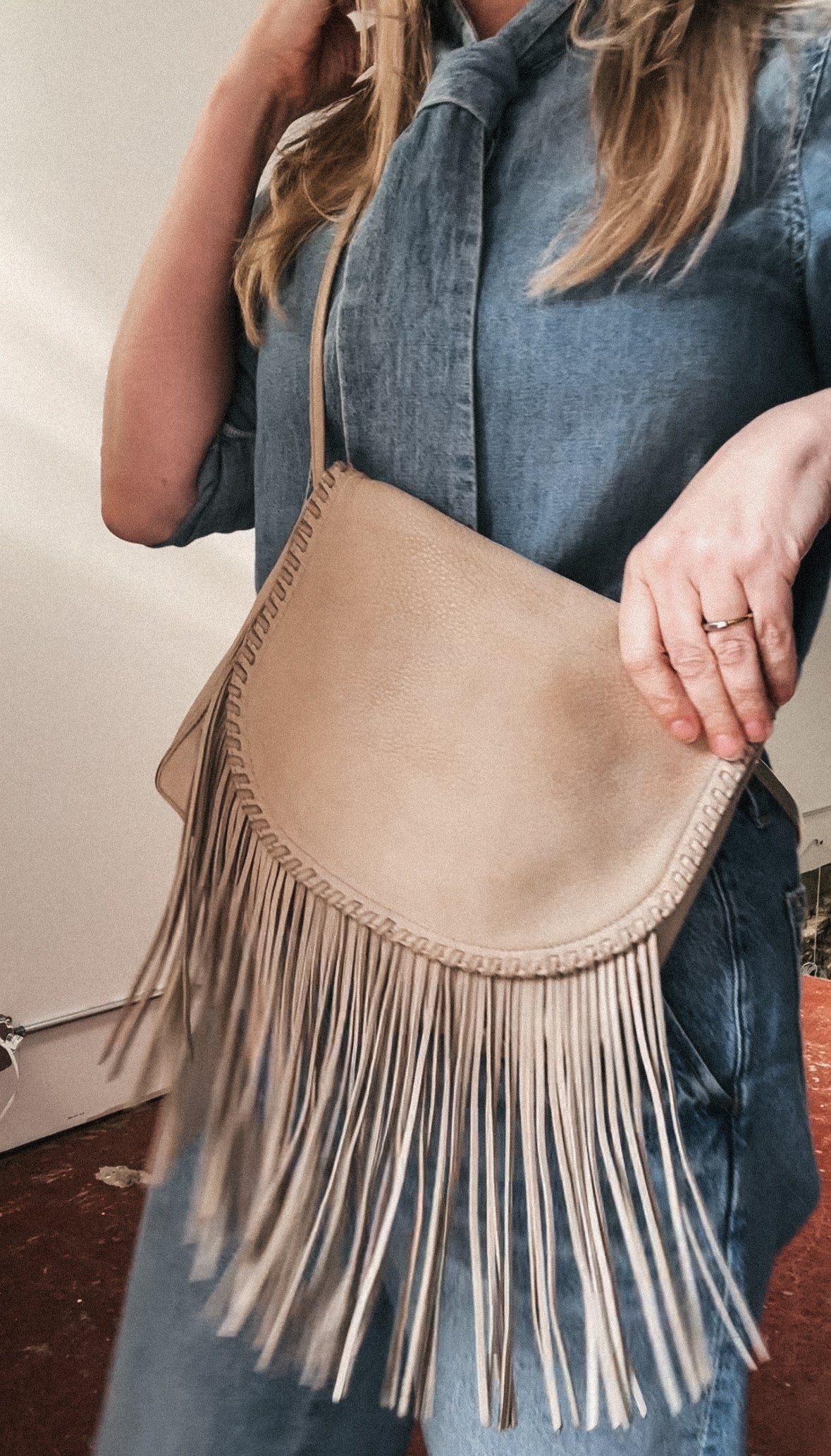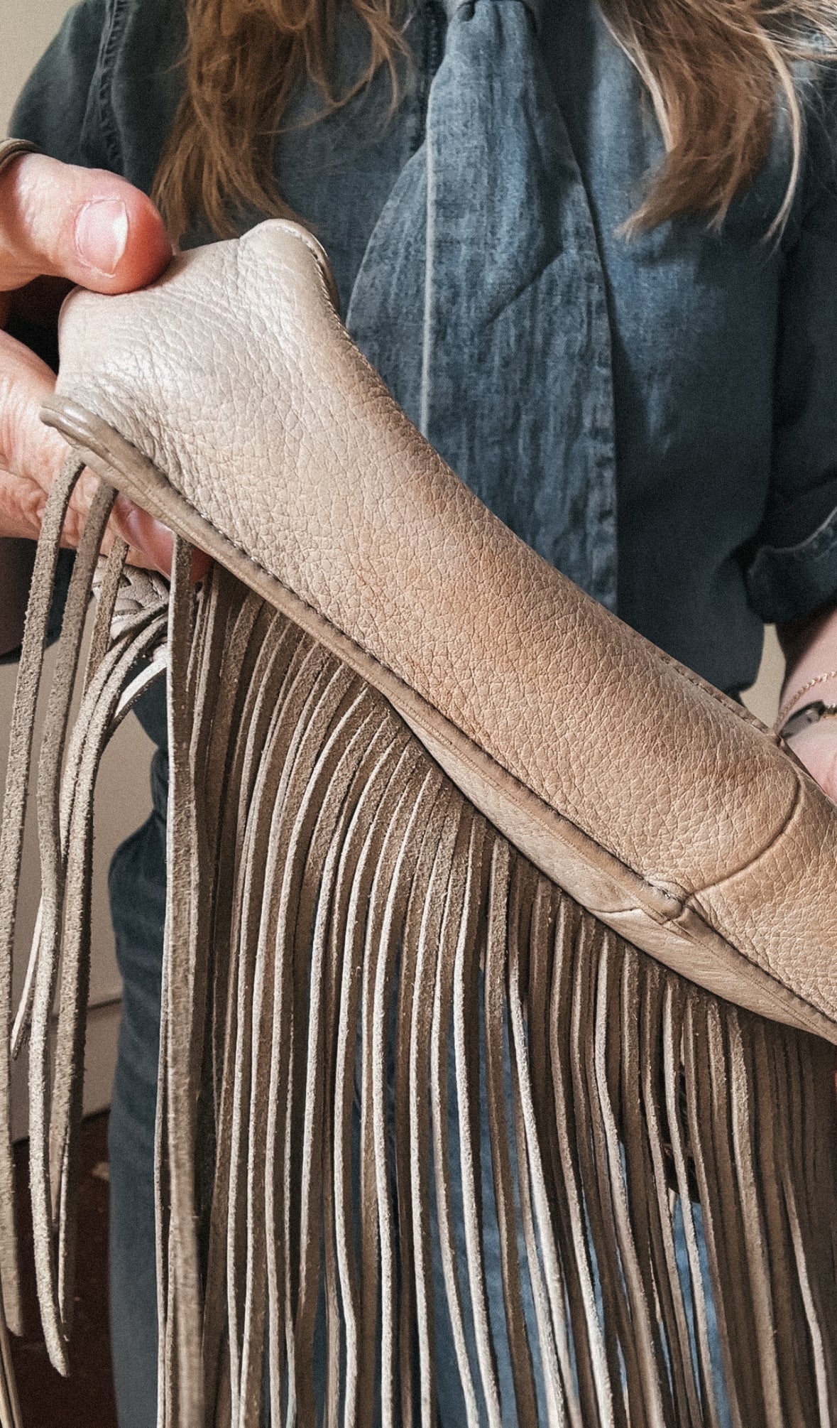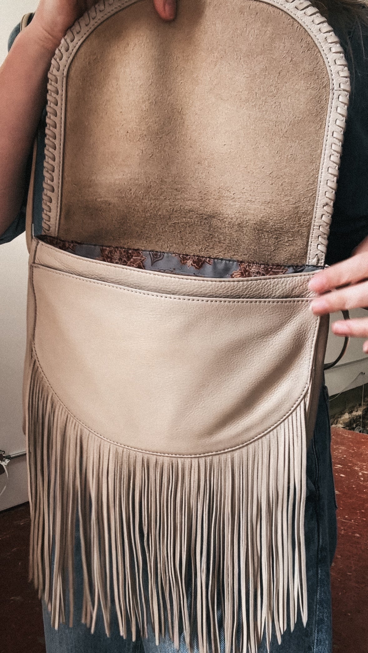 Hobo cream leather fringe bag. Some marks on leather but overall in great condition