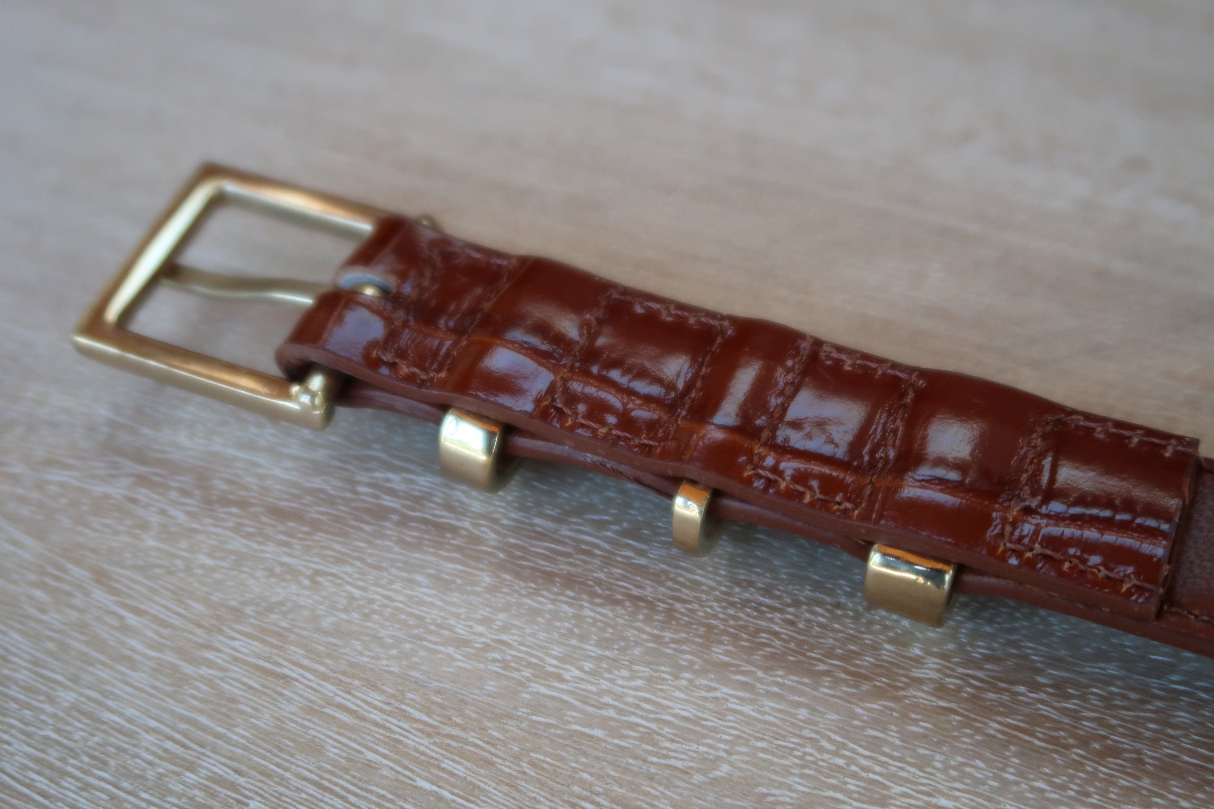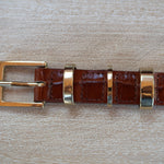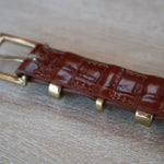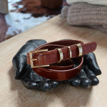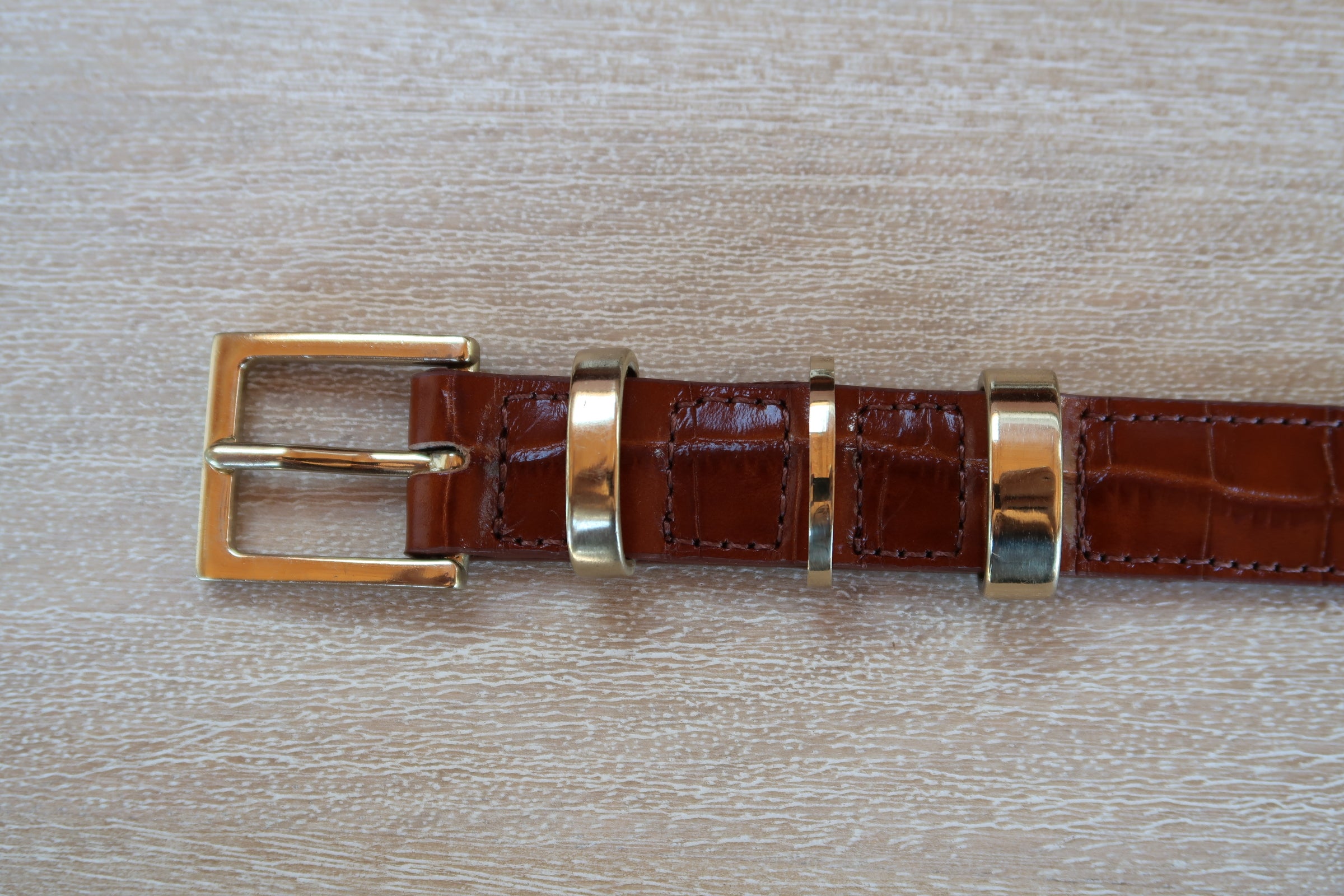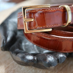 Refined, understated, and built for everyday wear. The Maren Essential Belt in Cognac Embossed Croc is crafted from sustainably sourced European leather with a supple lambskin backing and finished with solid brass hardware. Its slim ¾-inch profile and sculptural silhouette strike the perfect balance between modern minimalism and timeless design.