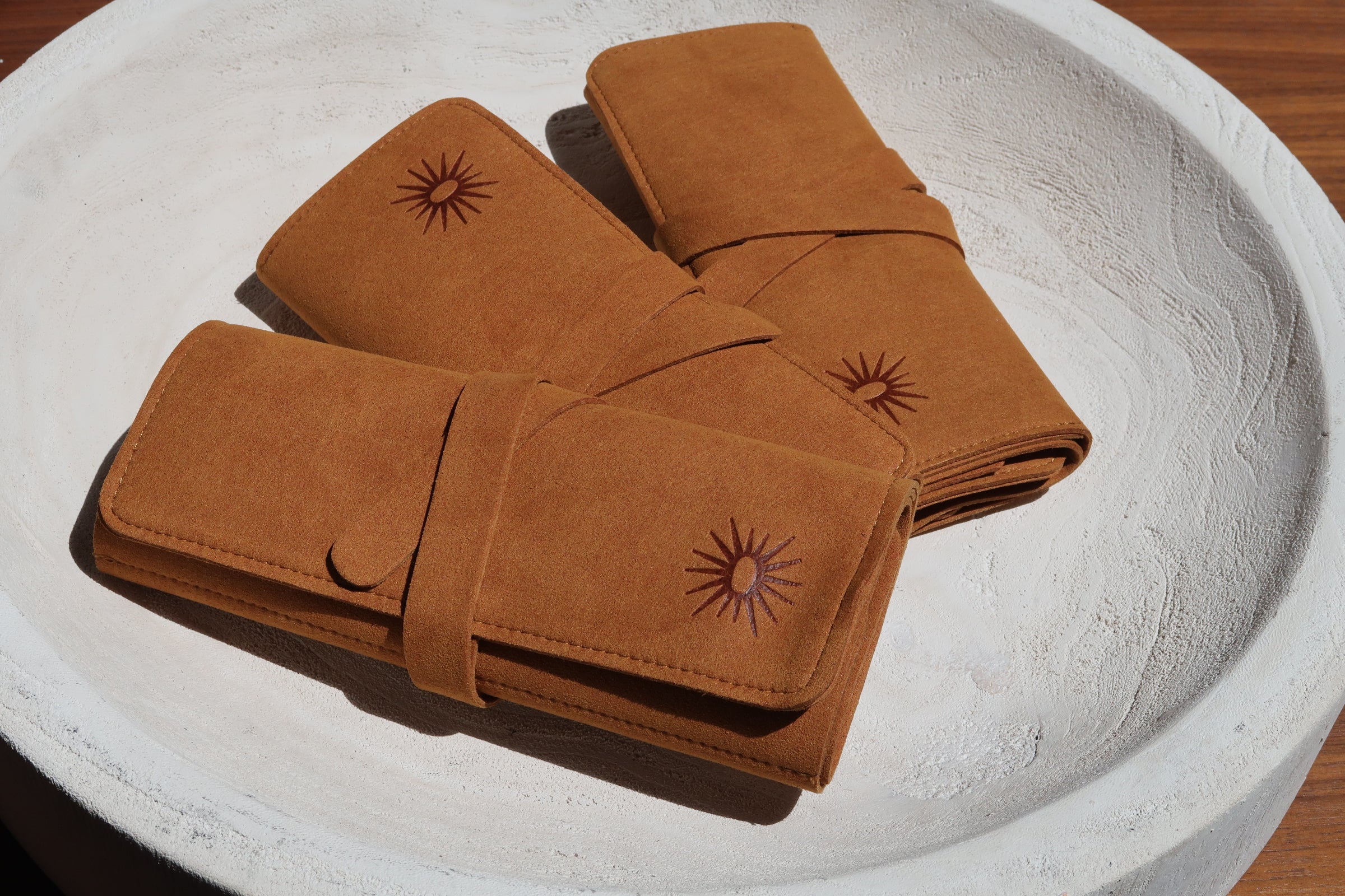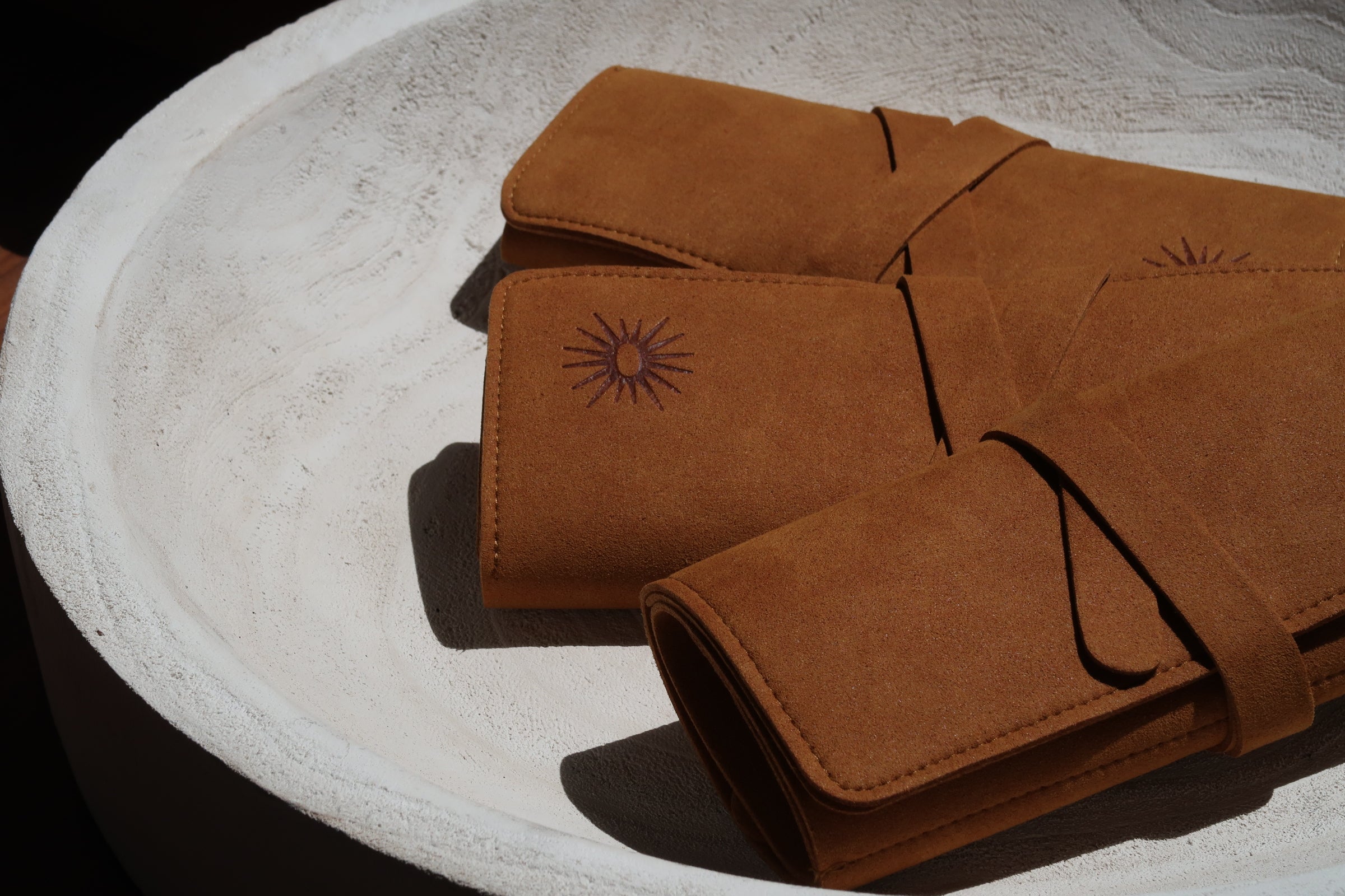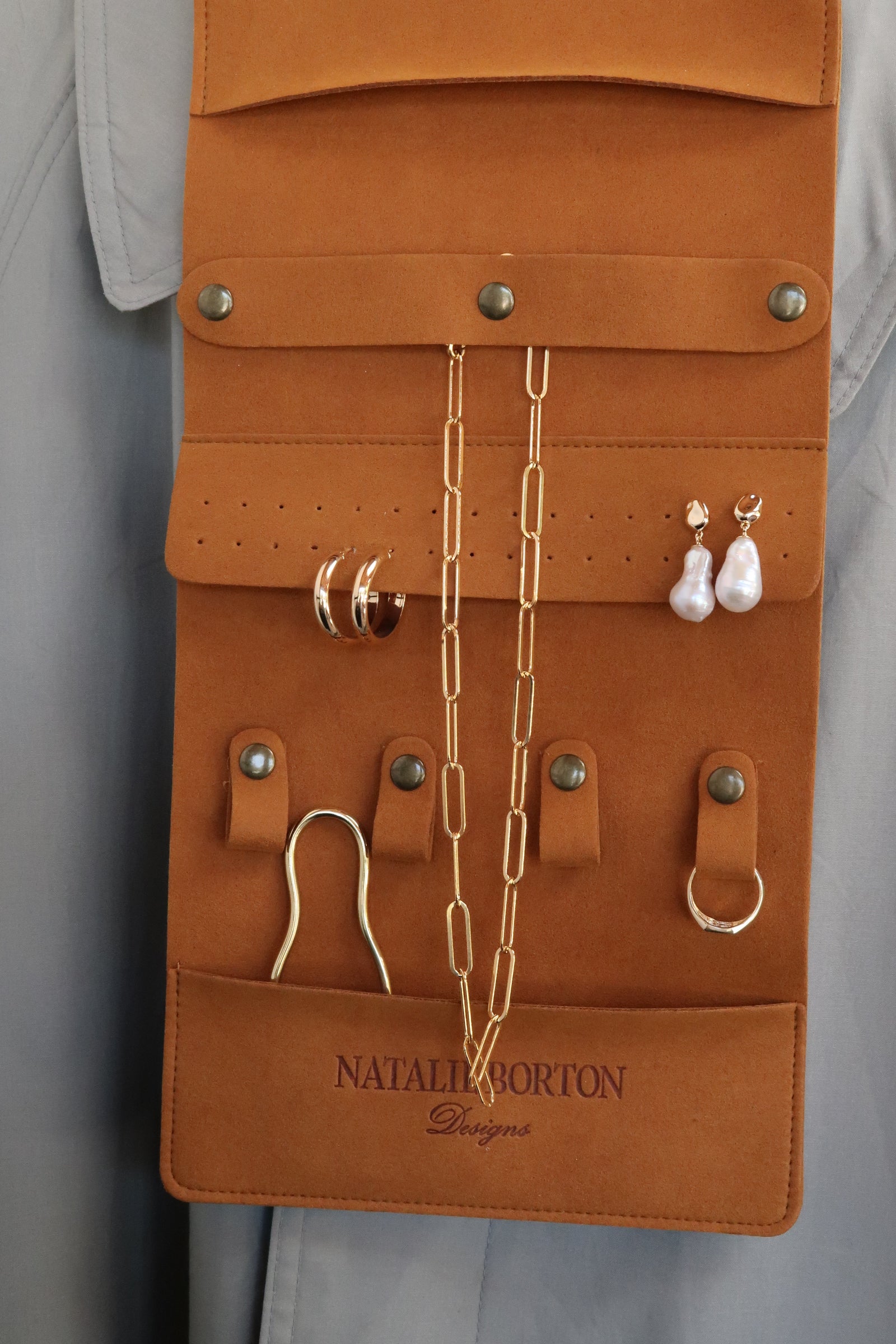 A beautifully designed travel essential to keep your favorite pieces secure, organized, and tangle-free. Made from soft, durable microfiber in a luxe Manuka honey shade, this roll is lightweight, easy to clean, and ultra-gentle on delicate jewelry.
