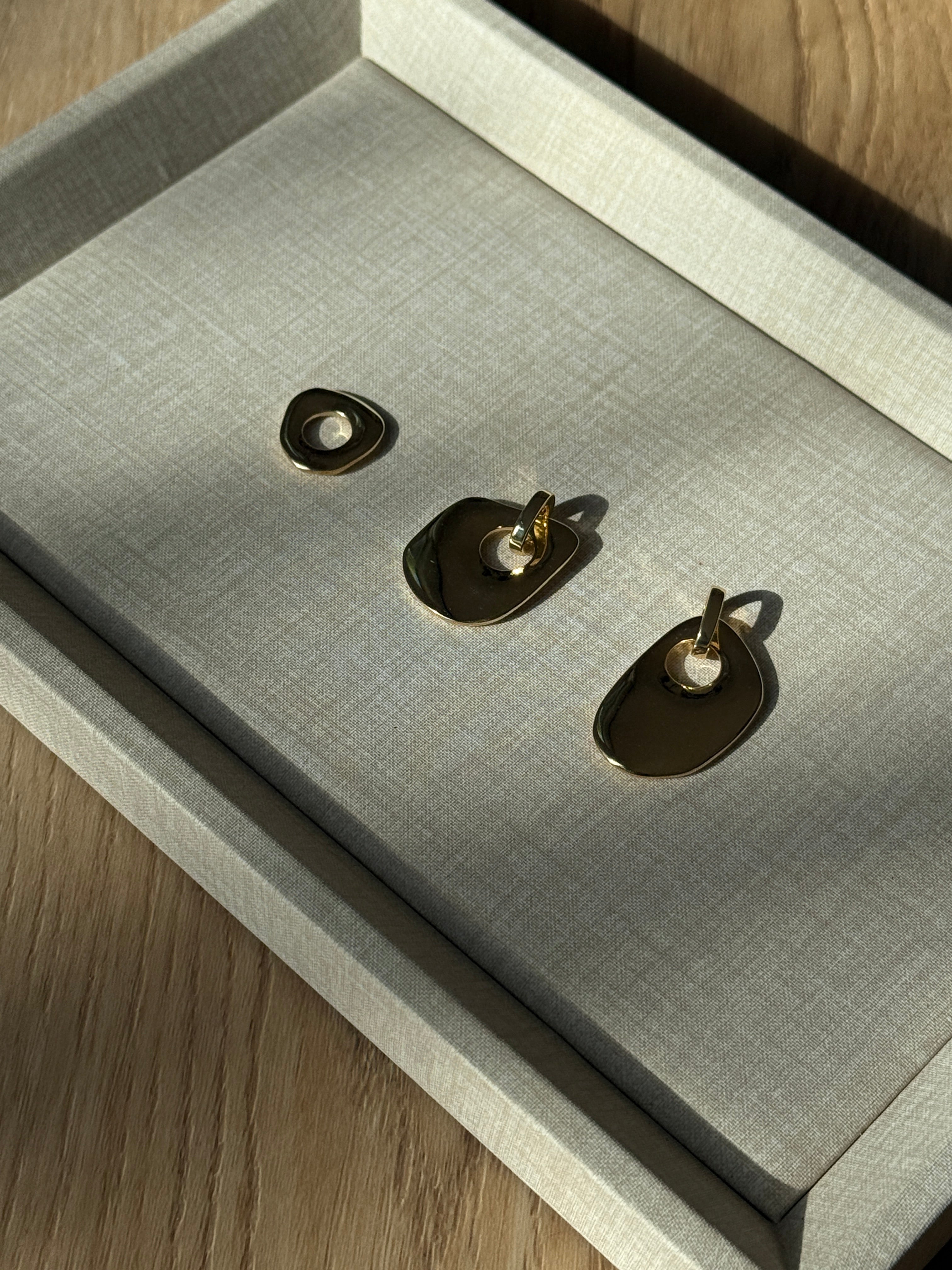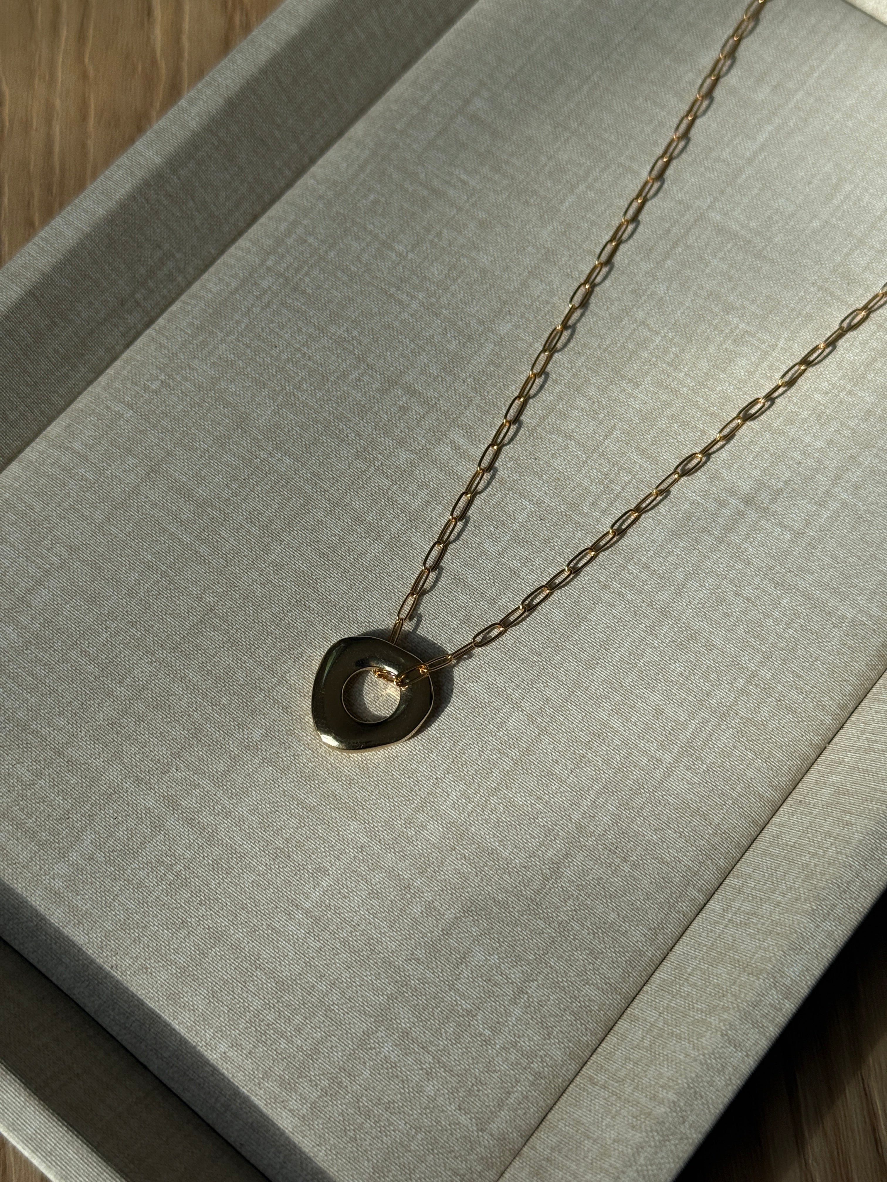 The Organic Shaped Pendants are cast in 100% solid brass and shaped with soft, fluid edges that feel both strong and organic. Substantial in weight yet effortless to wear, each piece adds quiet depth without overpowering what you pair it with.