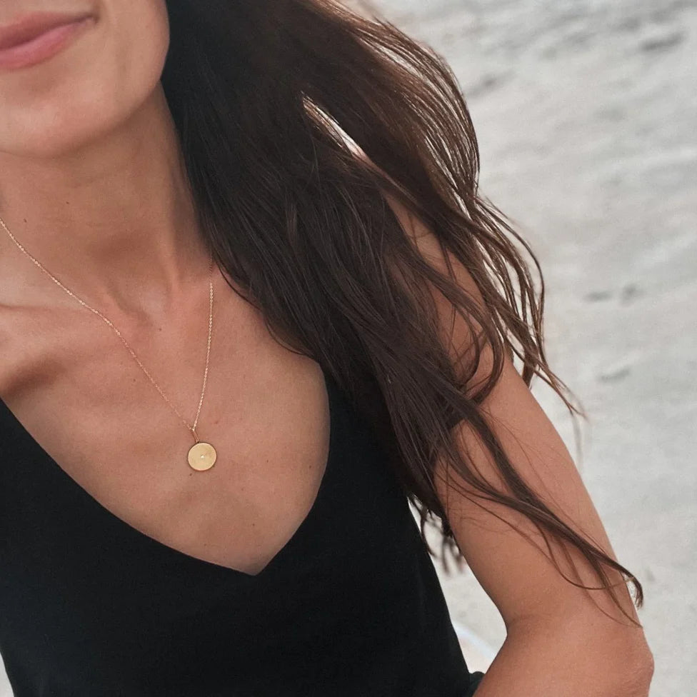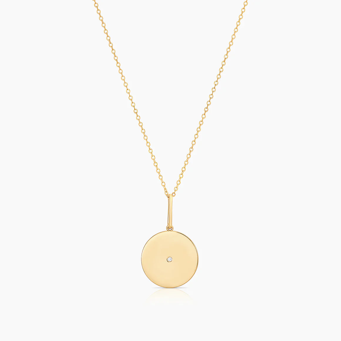 14k Fine Full Circle Coin Necklace with Diamond | SS