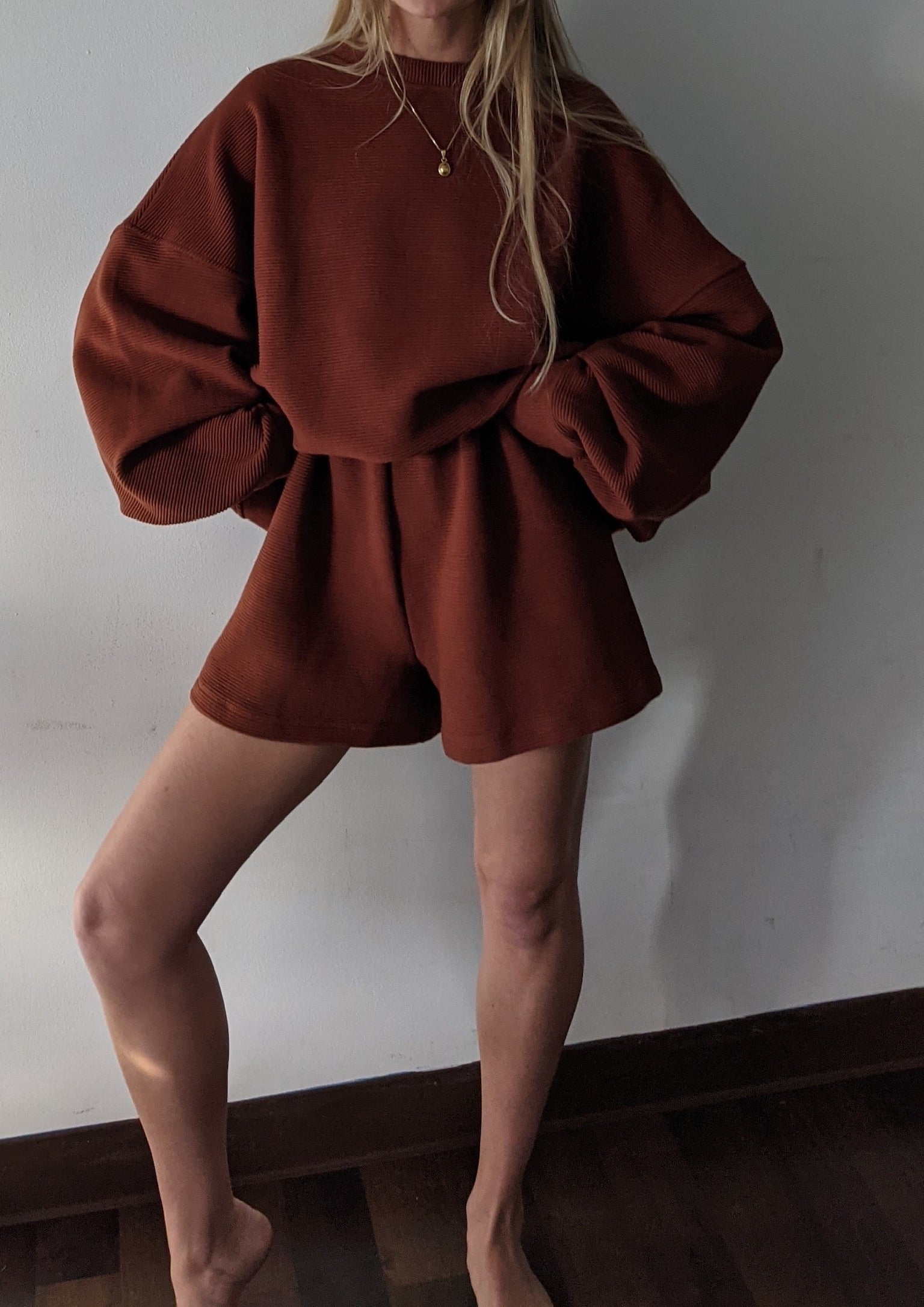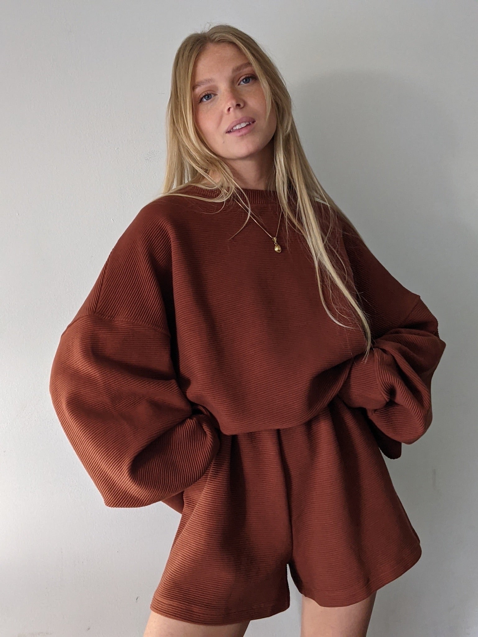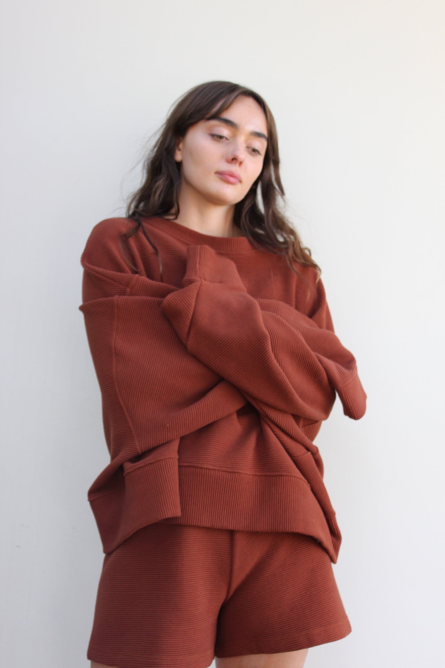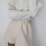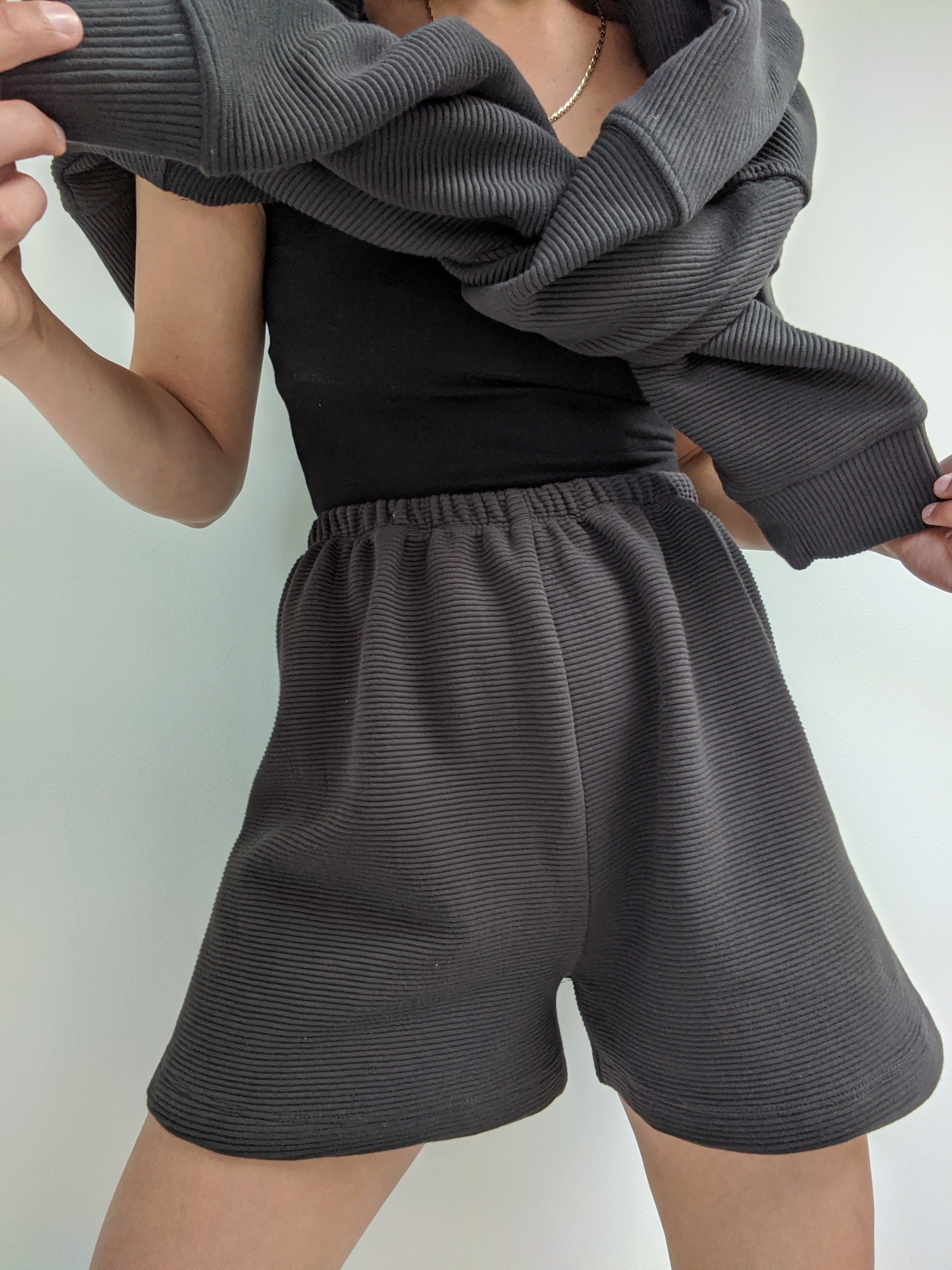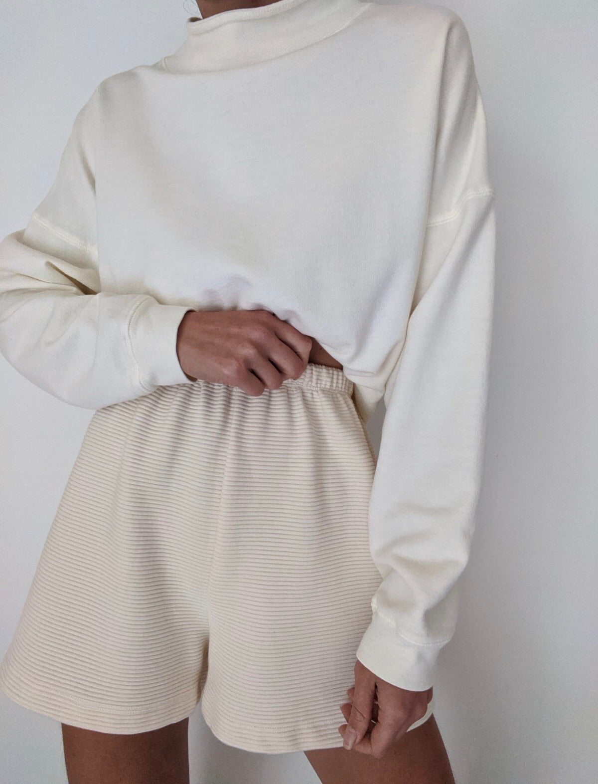 An all-season, easy pull-on short to pair with coordinating pieces from our In-House Collection as well as favorites from one's own closet. The Chloe Shorts in Rippled Cotton features an easy elastic waist with a relaxed, yet clean fit. The exquisite rippled fabric has an incredibly soft yet substantial hand, reminiscent of our favorite vintage pieces. We envision them paired with pieces from our In-House Sweats Collection.