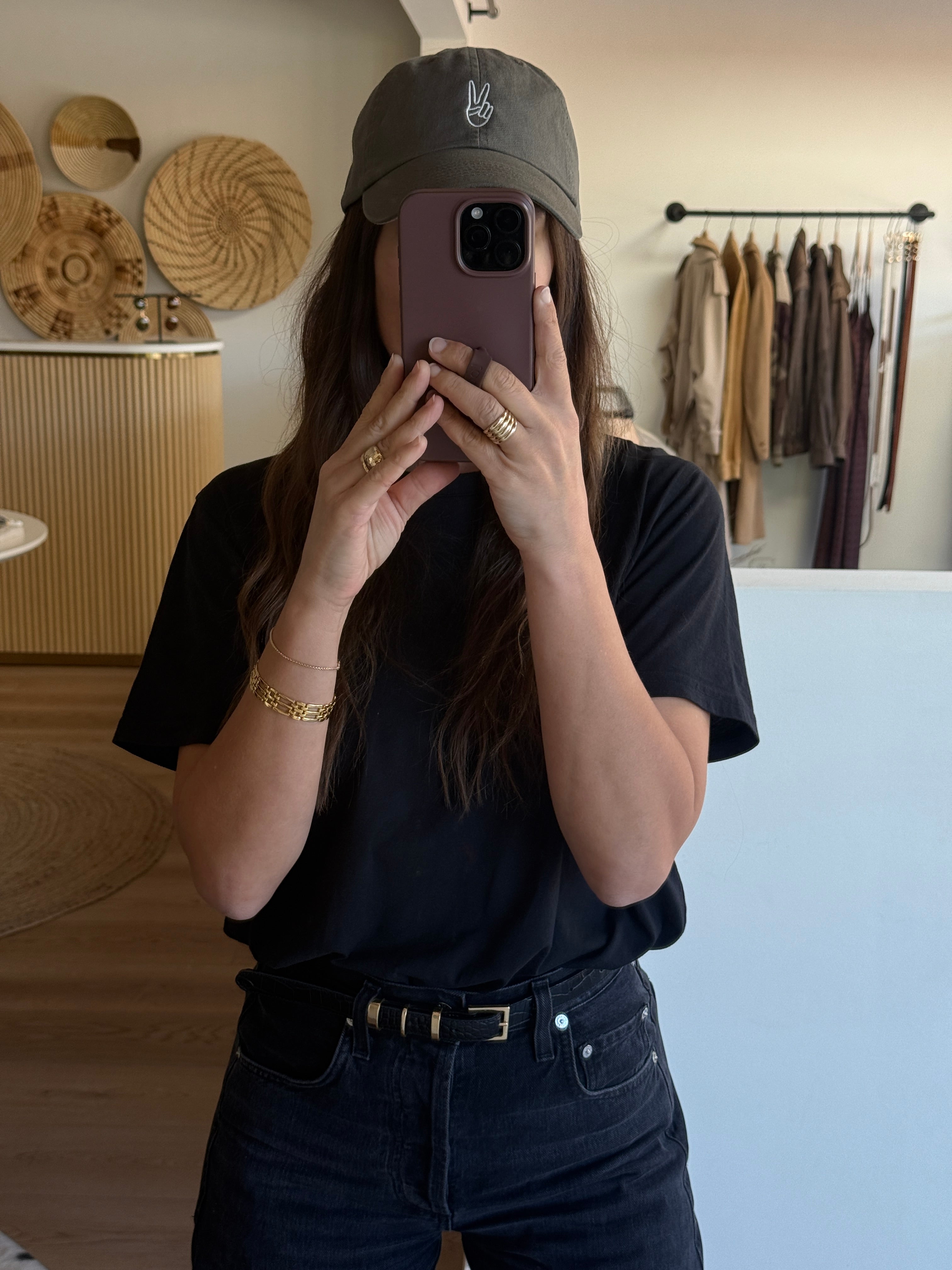 The Peace Baseball Cap is relaxed and unfussy, finished with a subtle embroidered symbol that reflects a belief in balance, calm, and choosing thoughtfully — how we live, how we move, how we get dressed. It’s not about making a statement, but about carrying a sense of ease and alignment through the everyday.