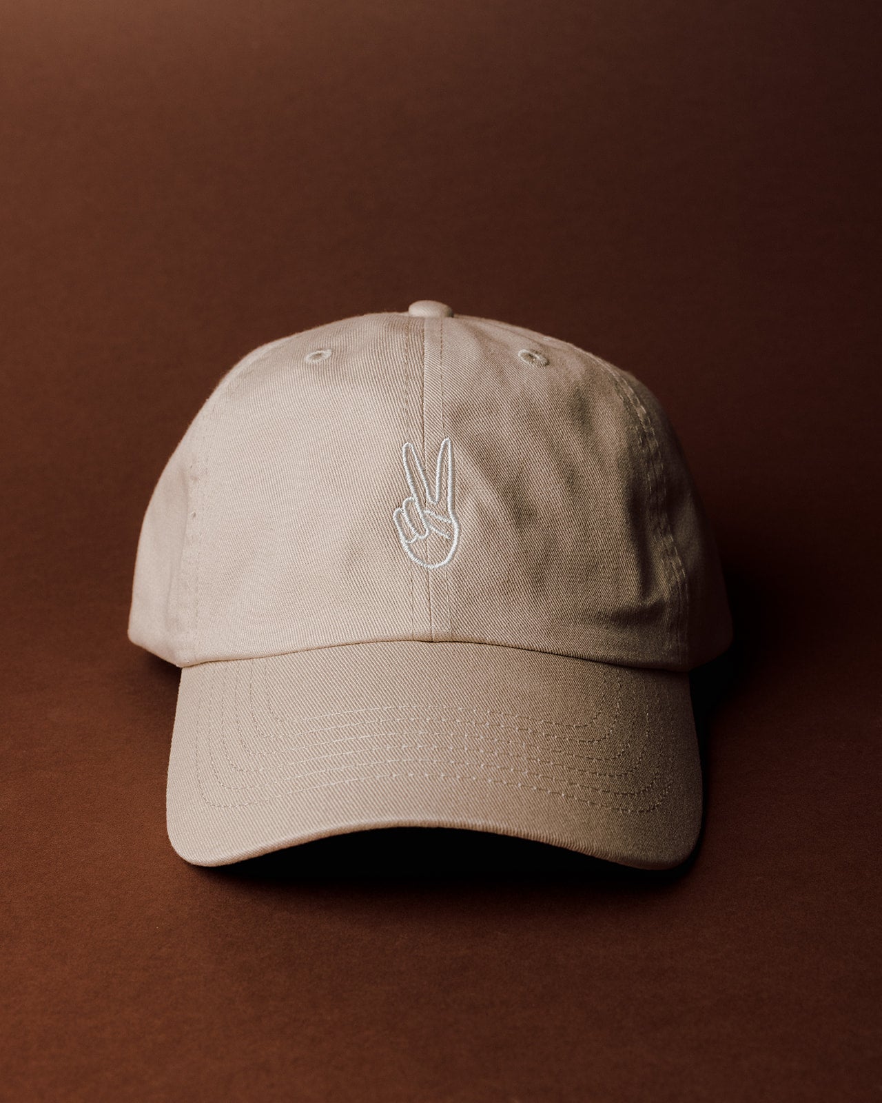 Effortless, versatile, and cool — our baseball caps are made for everyday style. The minimal white peace sign embroidery adds a playful yet meaningful detail, perfect for those who believe in living with intention and positivity. Crafted from soft, durable fabric, this cap brings a touch of casual charm to any look.  With an adjustable strap, this hat provides a comfortable fit, making it a staple for laid-back days or on-the-go moments. Pair it with your favorite jeans, a cozy sweater, a great blazer, or your go-to weekend attire.