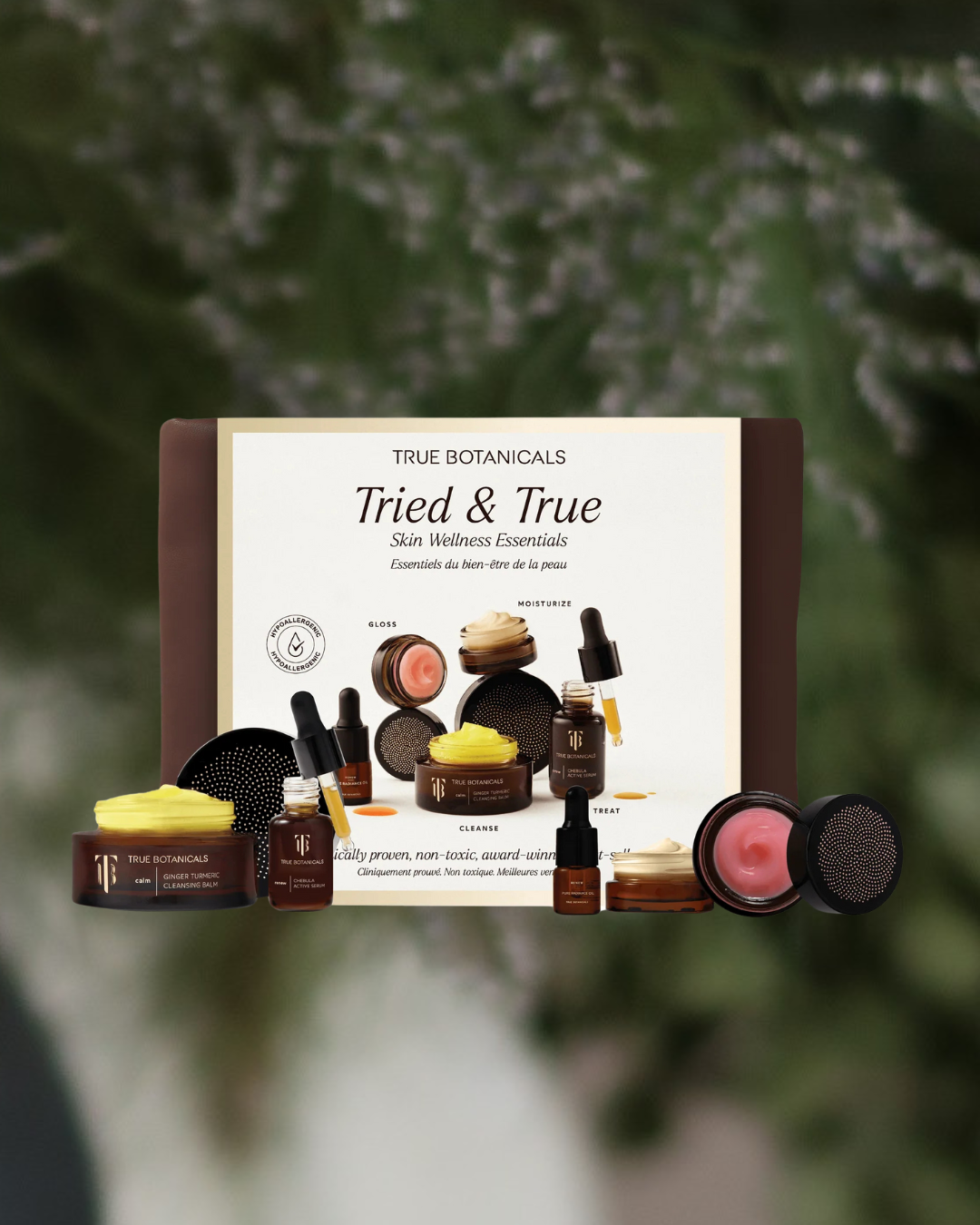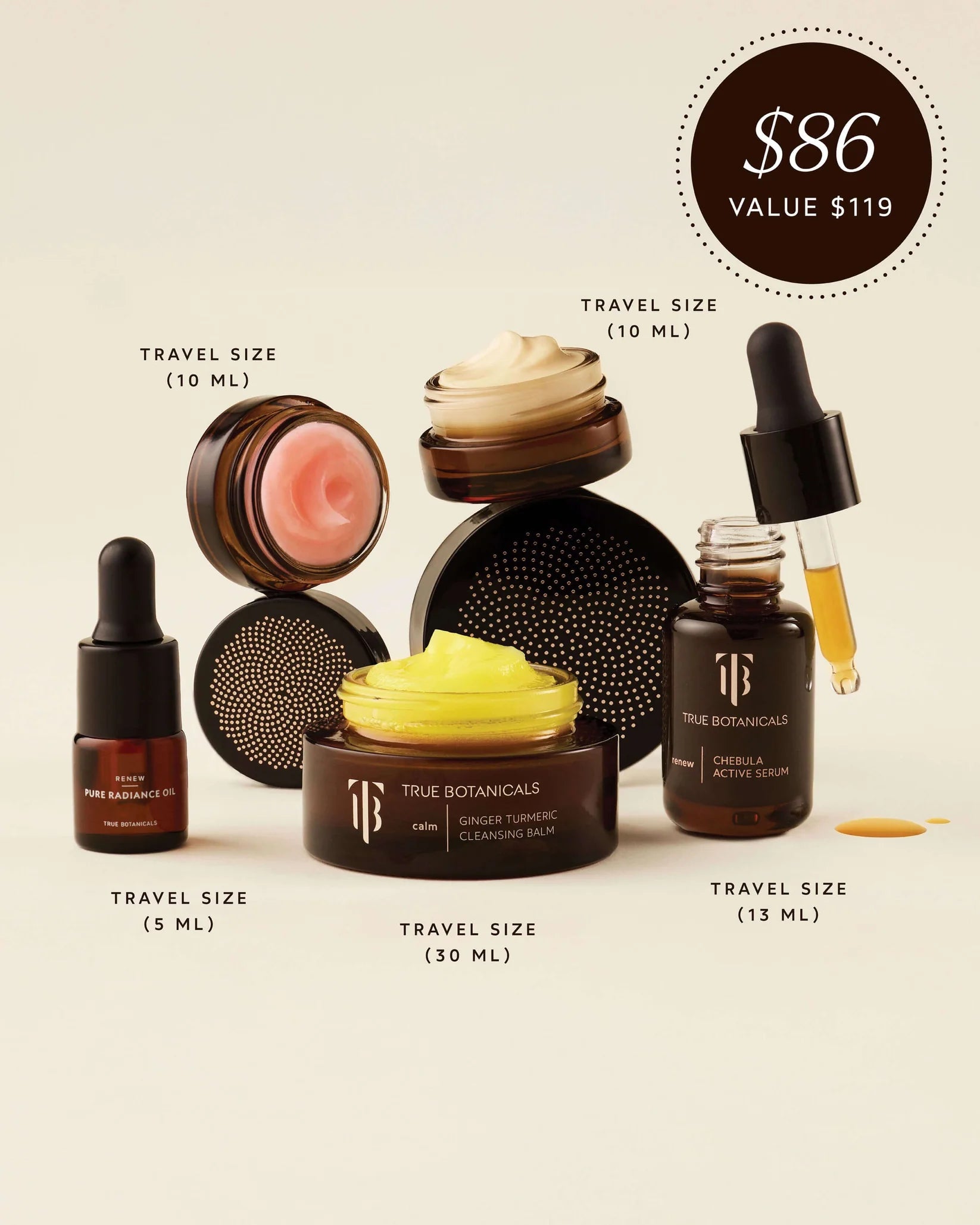 An ideal set to try True Botanical's best sellers that center skin. Perfect for cleansing, treating, regenerating, and nourishing on the go. Includes a luxe chocolate case for carrying items, making it perfectly giftable.