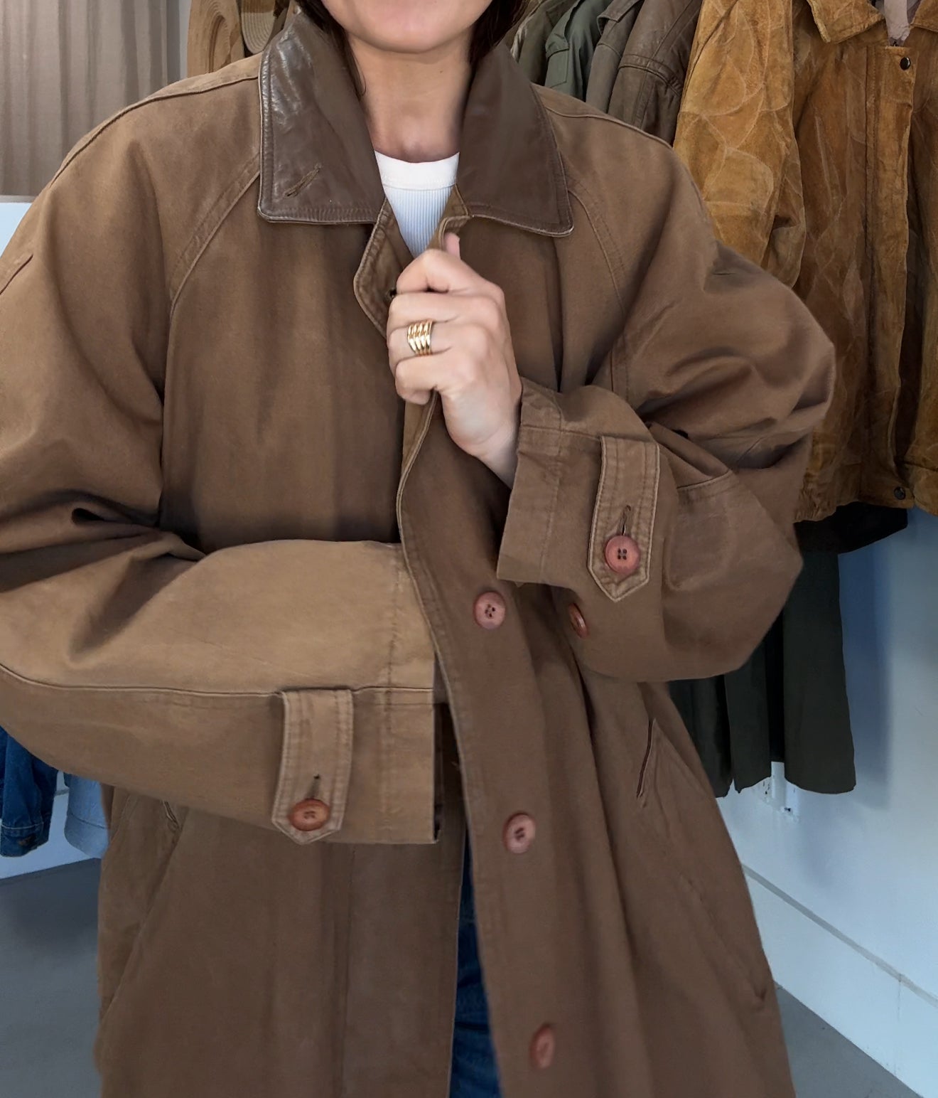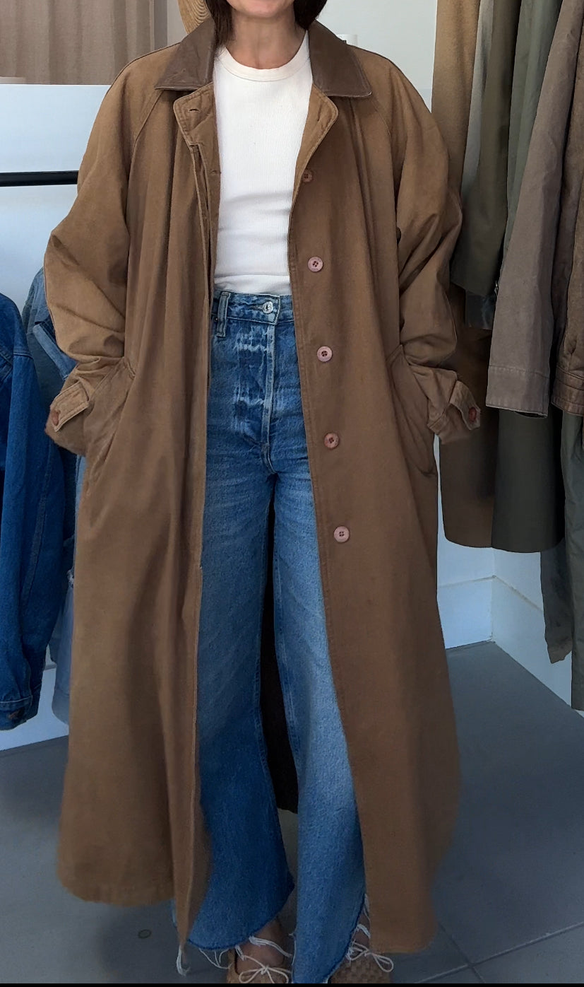 This vintage Aeropostale barn coat brings modern utility to a timeless silhouette. Crafted from 100% cotton in a longline chore coat shape, it features an intentionally oversized fit — relaxed, effortless, and ideal for layering. The extended length adds subtle drama, making it a standout piece that still feels grounded and wearable.