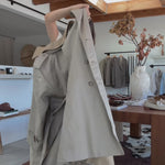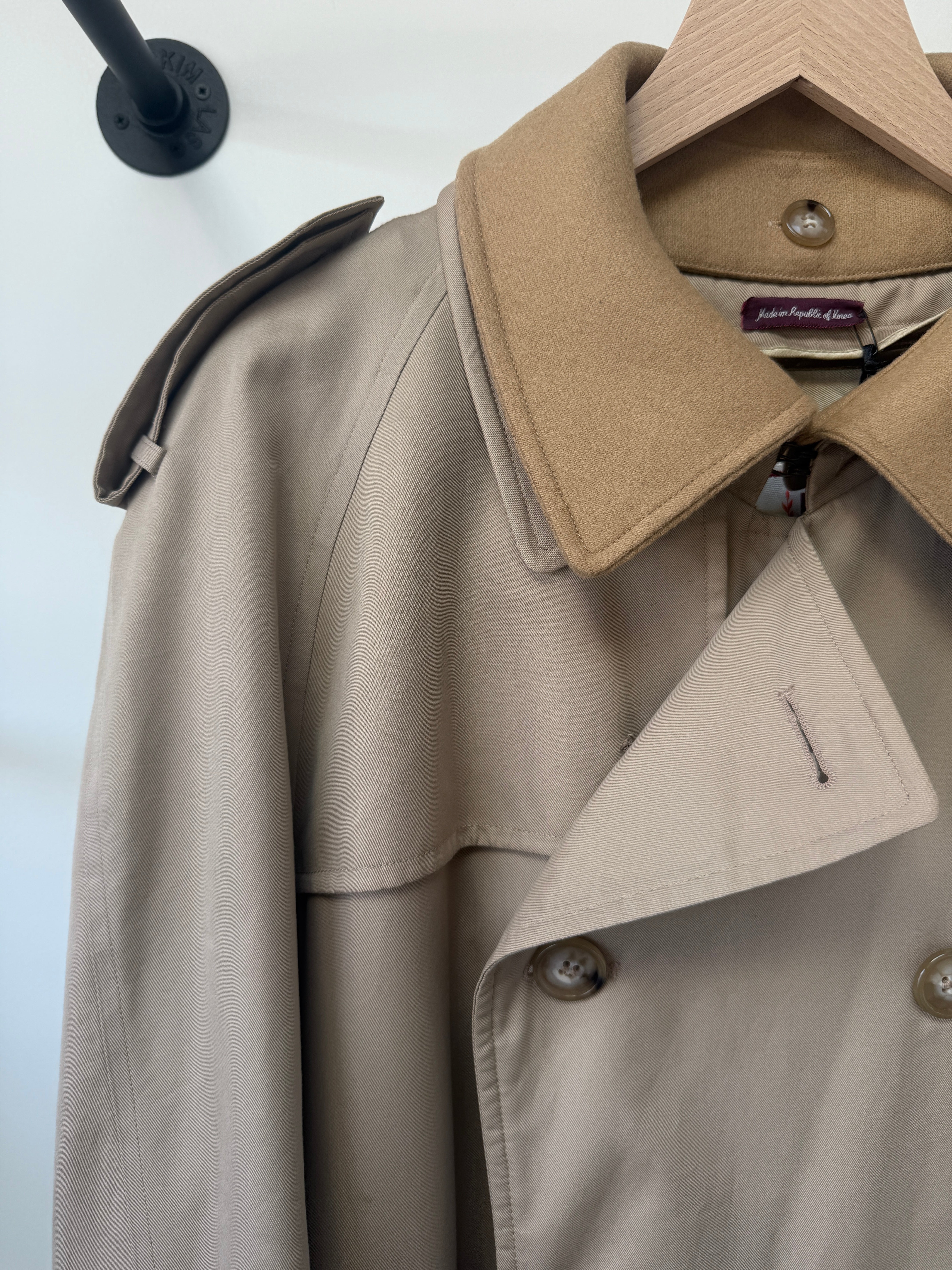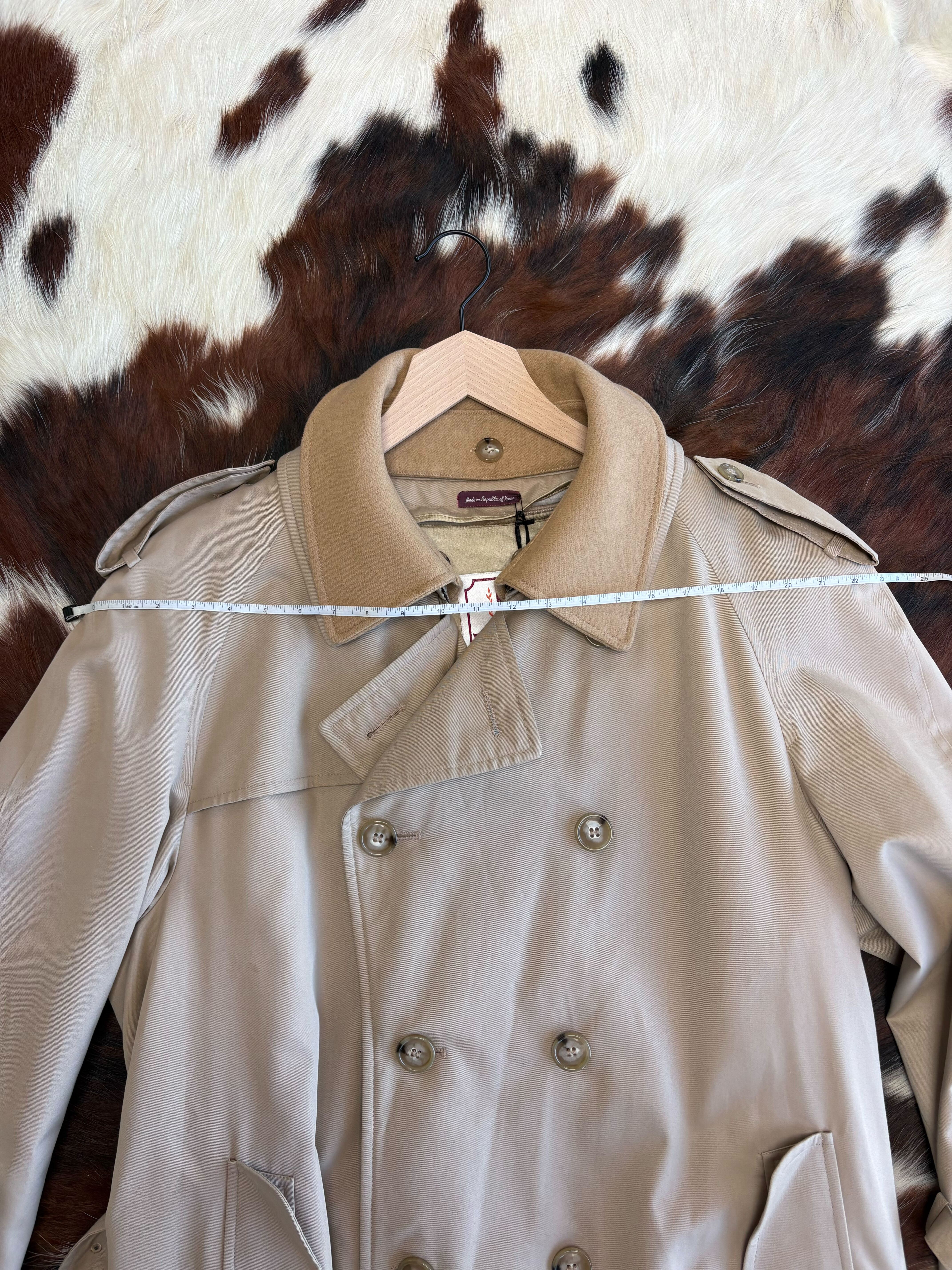 What makes this piece especially special is the removable wool collar, which adds warmth and a refined texture during colder months while allowing the coat to transition seamlessly into lighter weather.